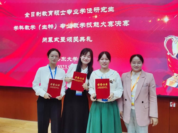 学校长期致力于培养拥有先进教育理念、宽广教育视野以及深厚教育情怀的未来卓越教师。学生在大赛中的出色表现和优异成绩,充分展示了教育硕士扎实的专业知识和较高的教学技能水平,生动展现了我校生命科学学院学科教学(生物)专业在学生培养和实践教学上的重要成果。