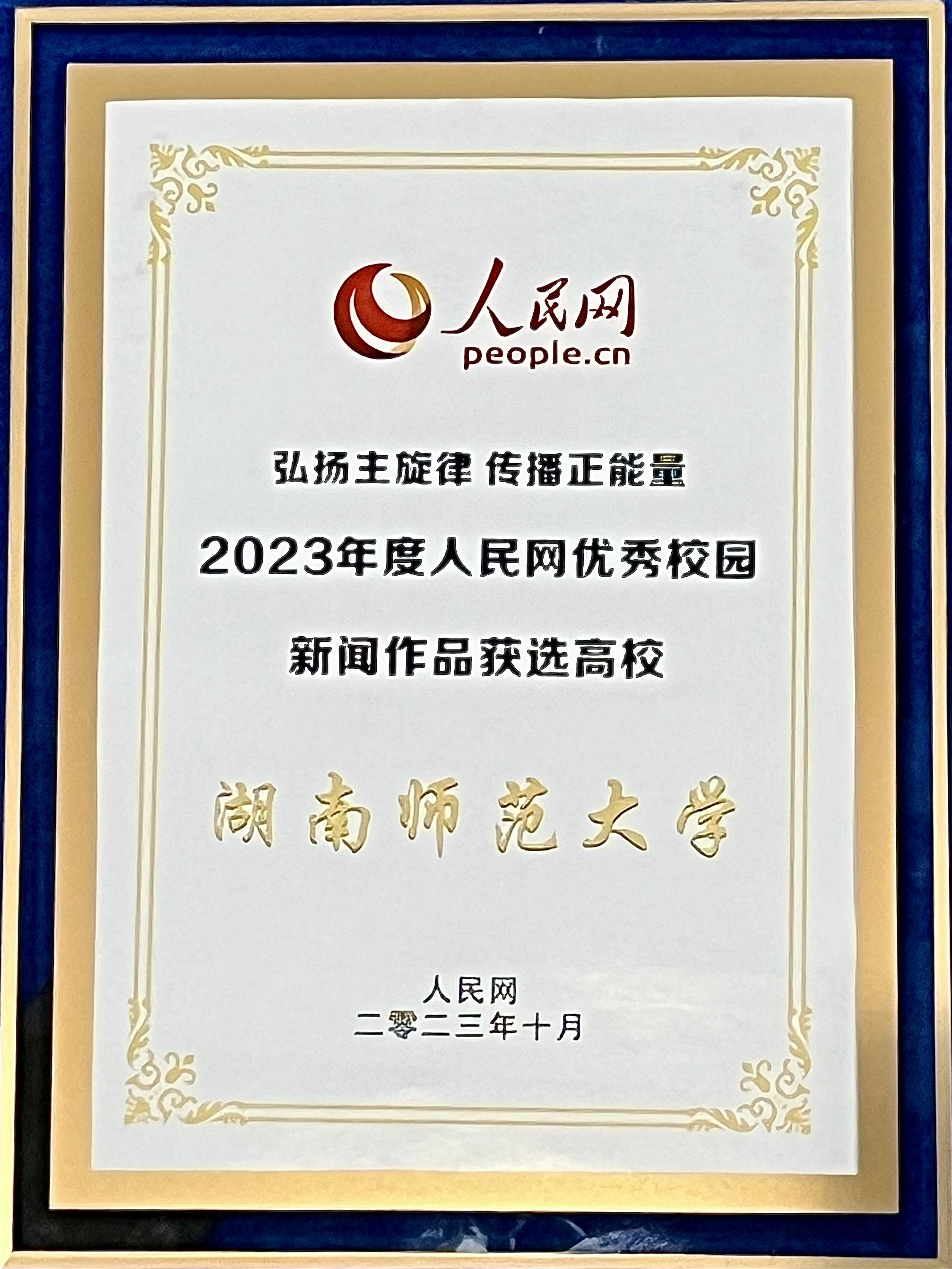 (记者 苏静怡)10月12日,以“发挥高等教育龙头作用 夯实强国建设人才之基”为主题的人民网2023大学校长论坛在辽宁沈阳举办。论坛上正式公布了人民网2023年高校优秀校园新闻作品。我校首次入选“2023年度人民网优秀校园新闻作品获奖高校”,由我校党委宣传部新媒体中心选送的《勇夺双金!他来自湖南师大……》获评新媒体类优秀作品。