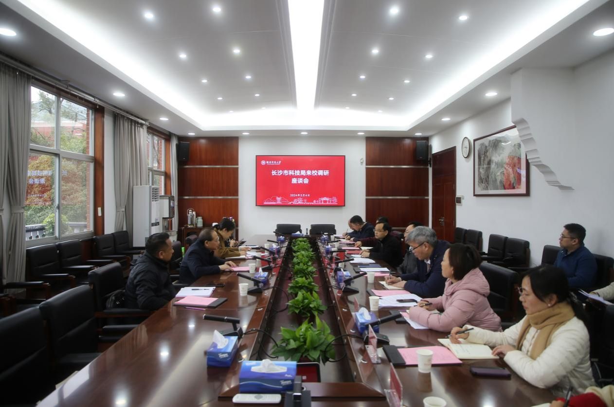 (记者 马铁泉 刘偲睿)3月4日上午,长沙市科技局党组书记、局长郭塨来我校调研科技创新工作,座谈会在校办二会议室举行。中共第二十届中央候补委员、中国工程院院士、我校校长刘仲华出席,座谈会由副校长潘安练主持。