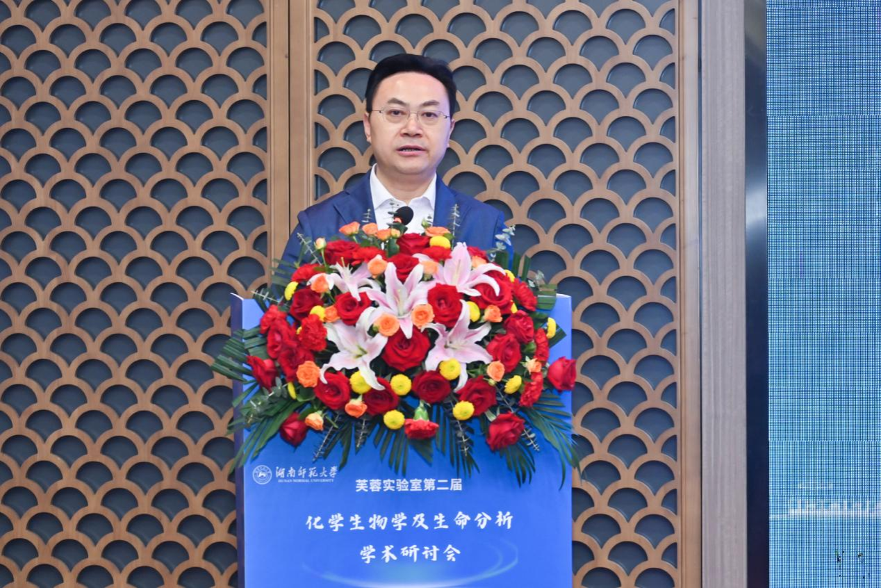 陈松向长期以来对湖南省科学技术的进步给予指导和帮助的各位专家表示衷心的感谢。他指出,芙蓉实验室和太阳网集团tcy8722联合举办本次“化学生物学及生命分析”学术研讨会是对我省科技发展的一种担当体现。他相信,通过本次学术会议的探讨与交流,将进一步促进化学生物学在各学科领域的交叉与渗透,为推动湖南省化学生物学与生命分析的发展提供有力支撑。