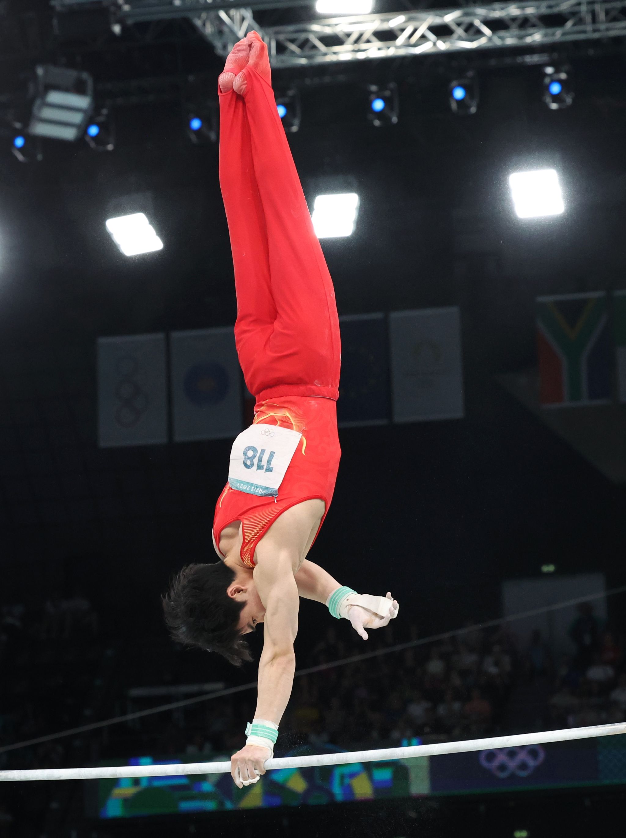 8月5日,张博恒以总分15.100分夺得男子双杠第4名