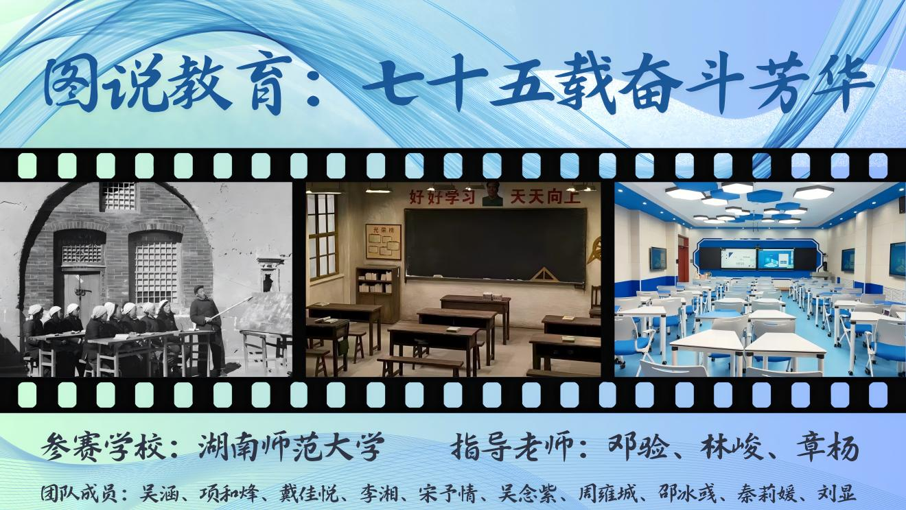 大学生微电影二等奖作品《图说教育》由马克思主义学院邓验、林峻、章杨老师指导,吴涵、项和烽、戴佳悦、李湘、宋予情、吴念紫、周雍城、邵冰彧、秦莉媛、刘显等学生完成。影片立足习近平总书记有关教育的重要论述,展现了中国迈向“教育强国”的壮丽征程,是一部回望中国教育沧桑巨变与辉煌成就、赞颂辛勤耕耘的人民教师的短视频作品。