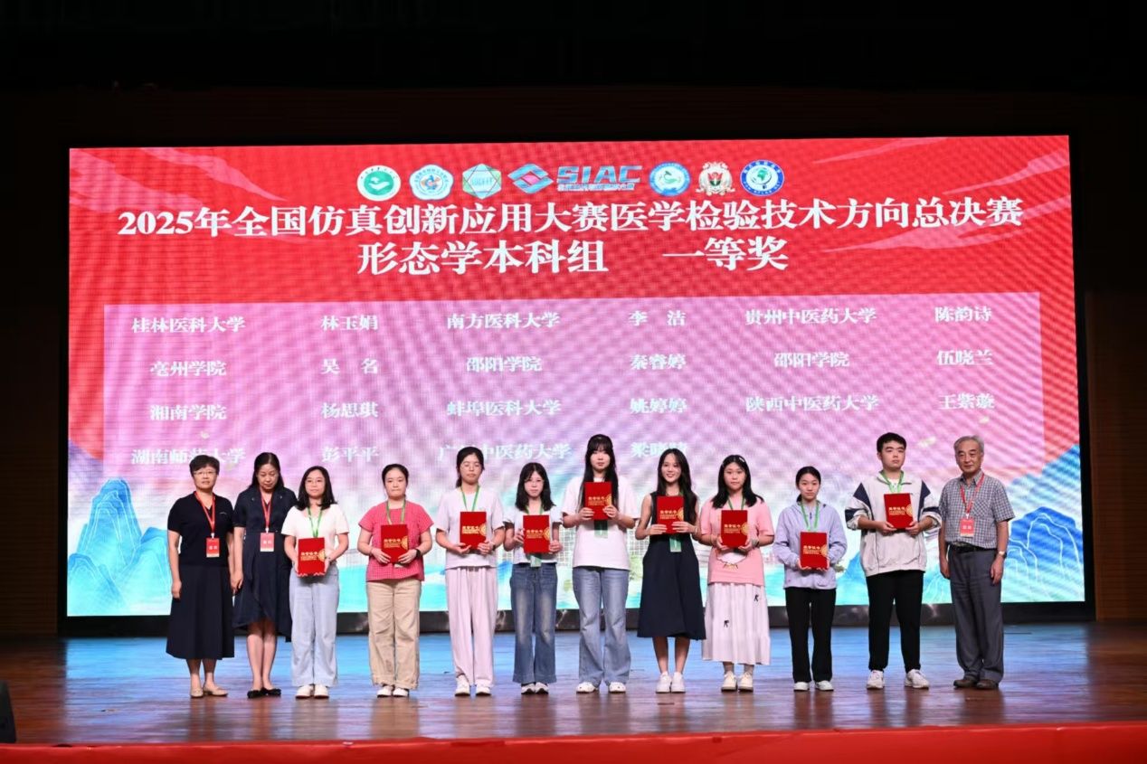 (通讯员 黄鸿剑)近日,2025年全国仿真创新应用大赛医学检验技术方向总决赛在陕西咸阳举办。我校医学部医学技术与转化学院本科生彭平平、邓亮在医学检验系教师团队的指导下分别斩获一等奖与二等奖。
