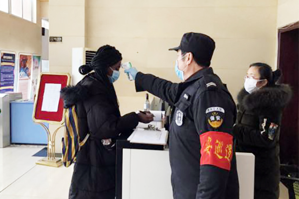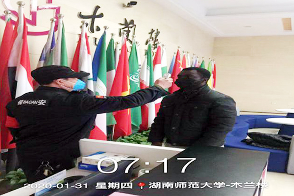 大事难事见担当。面对复杂严峻的防控形势,他们采取多渠道保障防疫物资供应,及时联系公司采购口罩、喷雾器、84消毒液、酒精、测温计等防护、消毒物资,视情提前进行补充。坚持每日消毒制度,消除卫生死角。物业公司的员工每日背负数十斤重的消毒液,穿梭在师大的各个角落,对公共区域进行有针对性的消毒、清洁和杀菌,并对电梯按键、马桶按键、门把手等细节部位逐一进行擦拭消毒,夯实校园的环境卫生基础。为加强疫情防控工作,维护师生生命安全和身体健康,他们全面落实楼栋和住宅区封闭管理。保利天创物业公司师大项目部每天不厌其烦地对木兰楼留校的近百名留学生进行体温测量及酒精消毒,提醒学生佩戴好口罩。珠海丹田物业公司师大项目部严格执行公寓管理的有关规定,每天两次定时汇报公寓当天工作情况,确保无齐全手续的学生一律不得进入公寓楼,遇有突发情况及时上报。在做好校园疫情防控的同时,他们加强员工体温检测和防护,每日组织对员工进行体温测试,对衣物进行消毒处理,做到全体员工健康保护全覆盖。