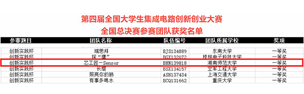 (供稿 物电院)近日,第四届“全国大学生集成电路创新创业大赛”全国总决赛在南京落下帷幕。由我校物理与电子科学学院组织,金湘亮指导,杨健、汪洋、钟泽宇完成的项目《军用极高精度荧光型光纤温度传感器关键技术的研究与实现》荣获一等奖。