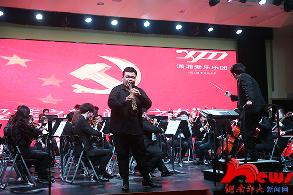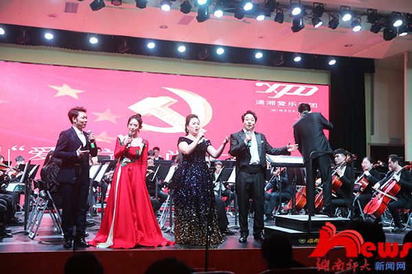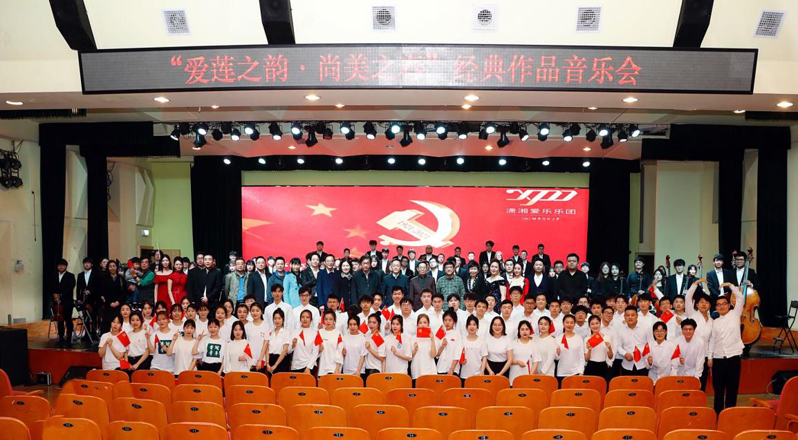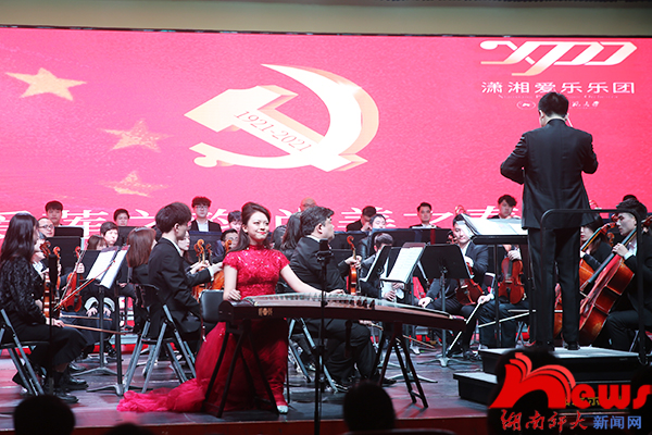 市政府机关工委、长沙银行等省市企校相关领导嘉宾,我校相关单位负责人与党员师生代表参加音乐会。