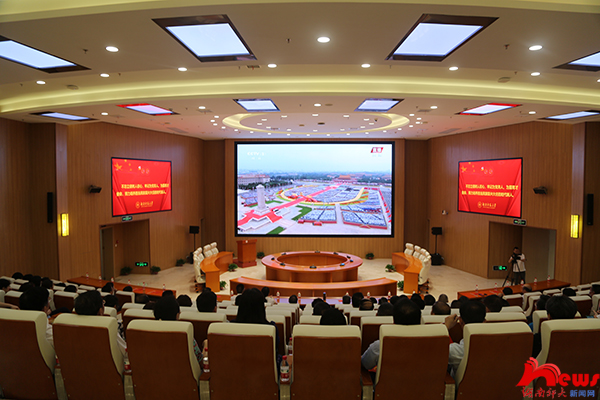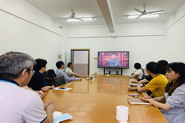 (记者 蔡颂 马铁泉 向婷婷 雷珩)为热烈庆祝中国共产党成立100周年,振奋民族精神,激发全校师生爱党爱国热情,7月1日上午,我校组织师生集中观看中国共产党成立100周年大会。全体在家校领导和党群部门负责人在图书馆一楼报告厅集中观看了大会直播,各单位也组织师生员工通过网络直播、微信、客户端等平台收看收听了大会盛况。