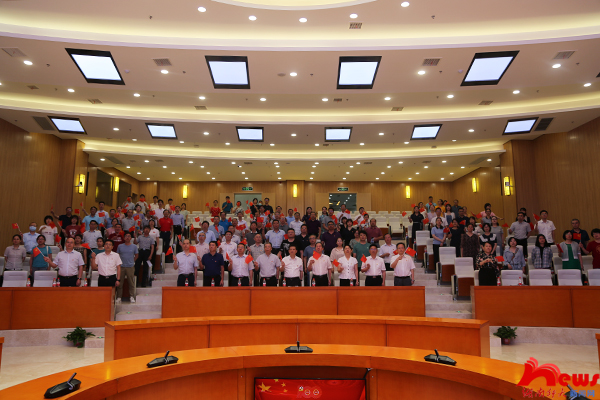 全体在家校领导和党群部门负责人在图书馆一楼报告厅组织收看庆祝大会