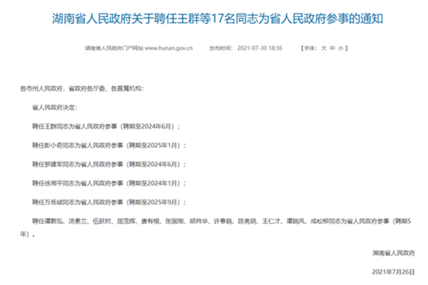 (供稿 党委统战部)近日,湖南省人民政府下发通知,聘任我校文学院汤素兰、旅游学院许春晓两位教授为省人民政府参事,此次全省共17人受聘。