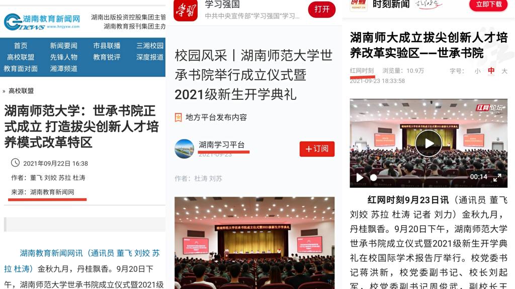 中国教育新闻网:《湖南师大:成立世承书院探索构建现代书院制培养新模式》