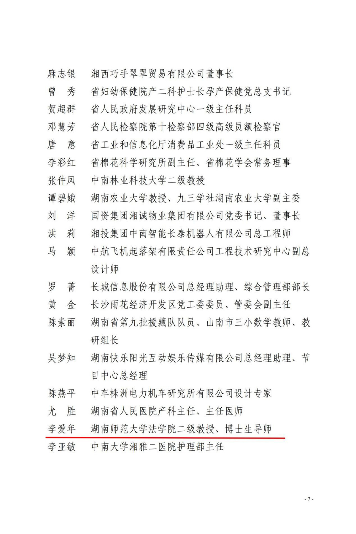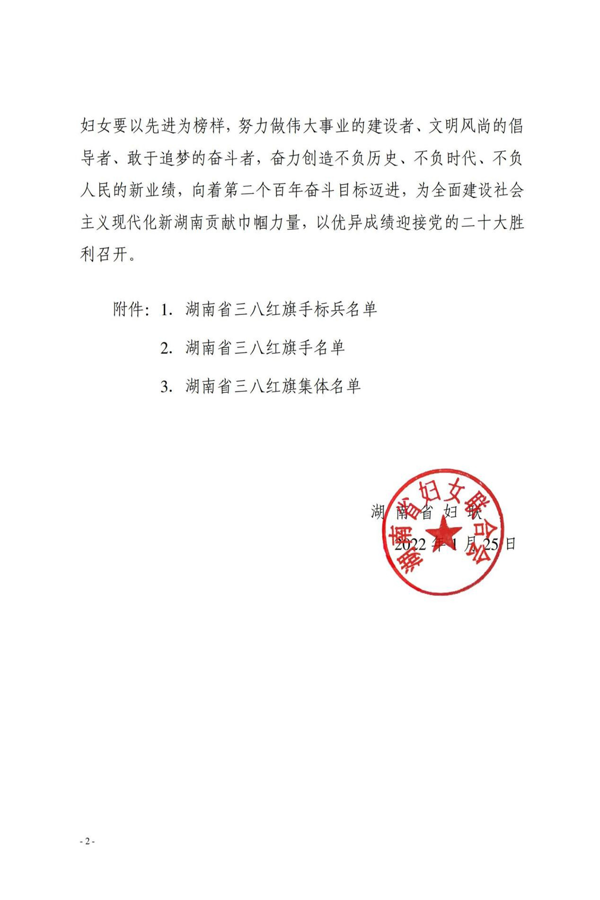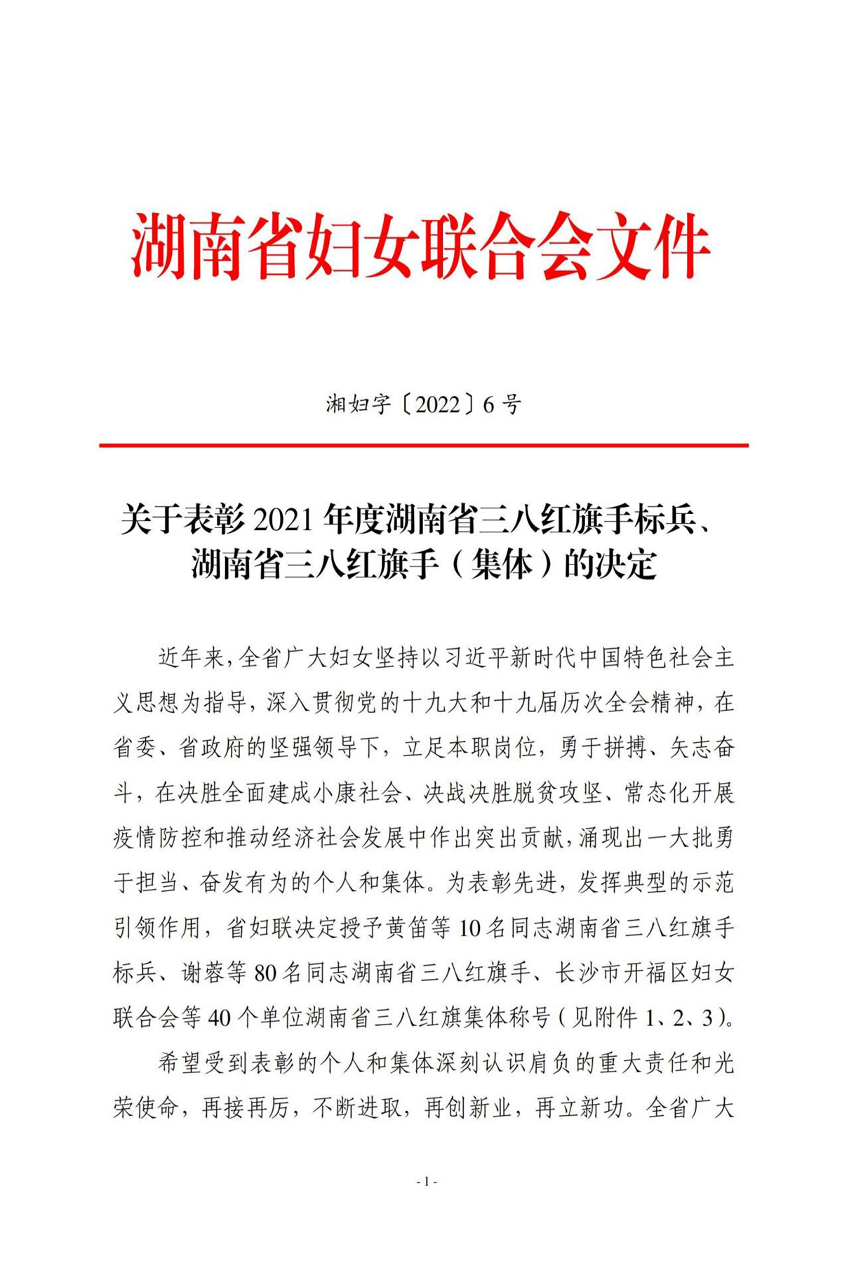 (供稿 校工会)近日,湖南省妇联发布《关于表彰2021年度湖南省三八红旗手标兵、湖南省三八红旗手(集体)的决定》(湘妇字【2022】6号),我校李爱年教授被授予“湖南省三八红旗手”荣誉称号。通过组织推荐和社会评选两个途径,省妇联共评选出2021年度湖南省三八红旗手标兵10人、湖南省三八红旗手80人以及湖南省三八红旗集体40个单位。