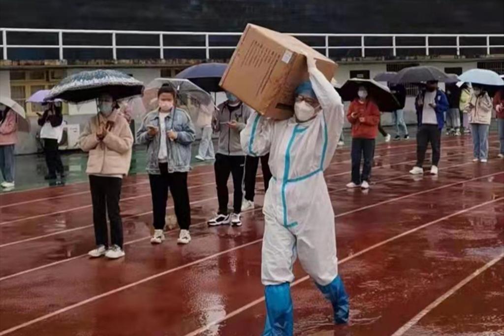 前一天,罗建平还和同事们奋战在学校最后一轮核酸检测的一线。恰逢晴天,虽然是四月,但室外温度已经达到了30℃。“穿着厚厚的防护服站在太阳底下,真的是随时都会有中暑的风险”,罗建平介绍到,“下雨也很麻烦,一是气温低,采集核酸的工作人员容易感冒;二是为了降低传染风险,采集核酸的场地必须安排在通风的室外,但雨天风也大,加大了采集核酸的难度。”不过结果是很好的,十轮核酸检测,学校做到了“不漏一人,全员阴性”。