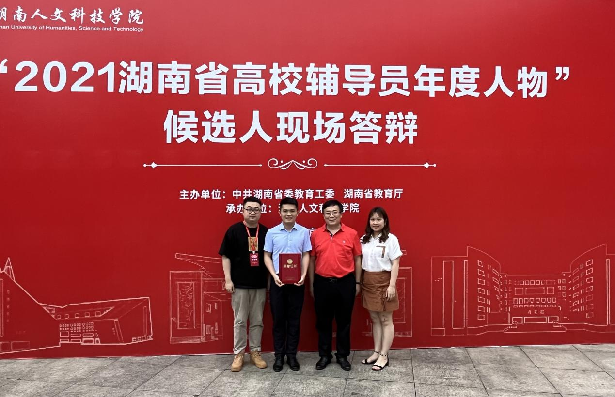 经各高校推荐,省委教育工委组织专家进行初推,并组织入围者在湖南人文科技学院进行了现场个人答辩,共评选出“2021湖南省高校辅导员年度人物”10名,“2021湖南省高校辅导员年度人物”提名奖20名。张明明老师凭借优秀的学生工作成绩和现场的个人答辩,被评为“2021年湖南省高校辅导员年度人物”。