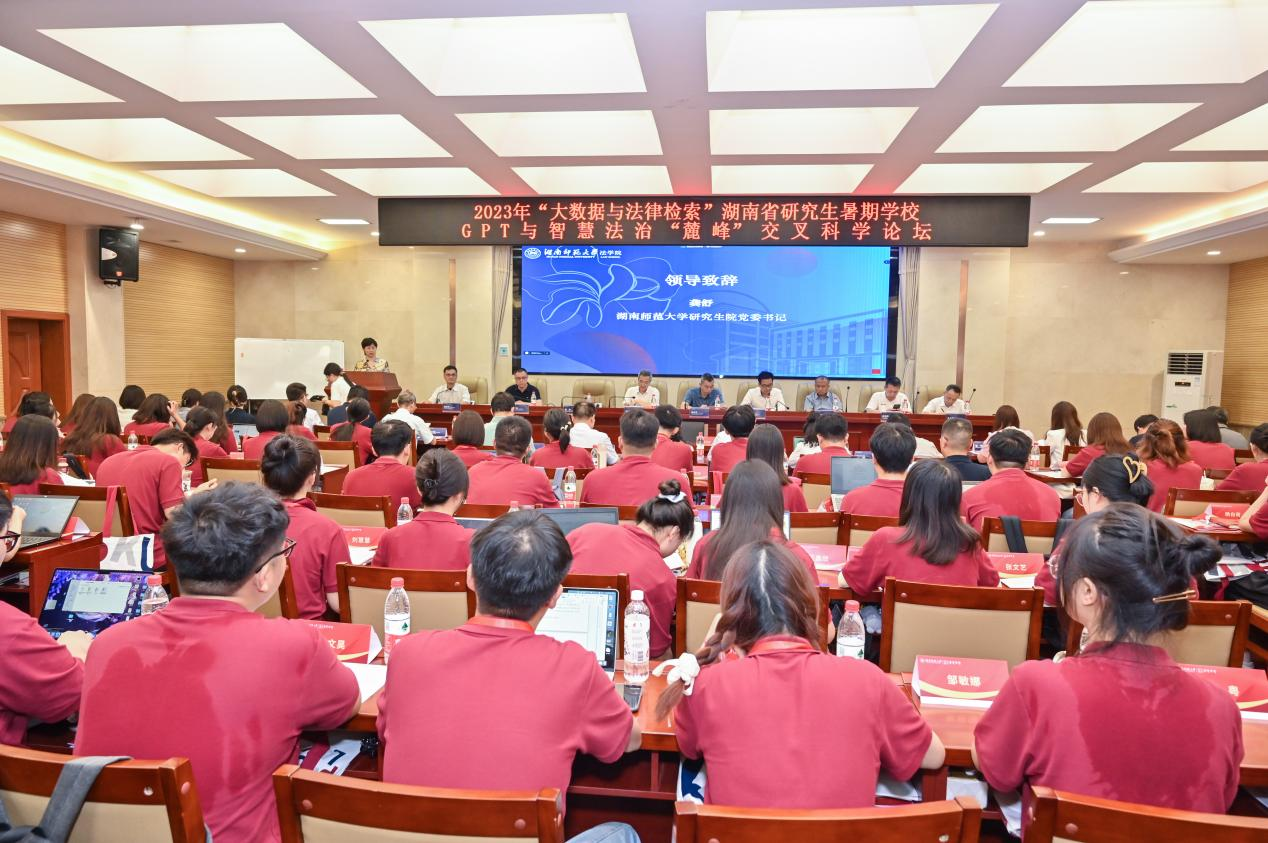(通讯员 陈思怡 罗雅萱)8月1日,2023年“大数据与法律检索”湖南省研究生暑期学校与太阳网集团tcy8722第十届第三期“麓峰”交叉科学论坛在我校法学院报告厅顺利举行。副校长蒋新苗出席活动。开幕式由我校法学院党委书记唐建文主持。