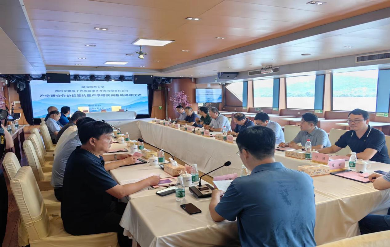 (供稿 旅游学院)8月1日,我校与湖南龙骧旅游服务开发有限责任公司就产学研合作签约暨产学研实训基地揭牌仪式在橘子洲旅游码头举行。龙骧集团党委书记、董事长余伟军、我校党委副书记周俊武出席会议。