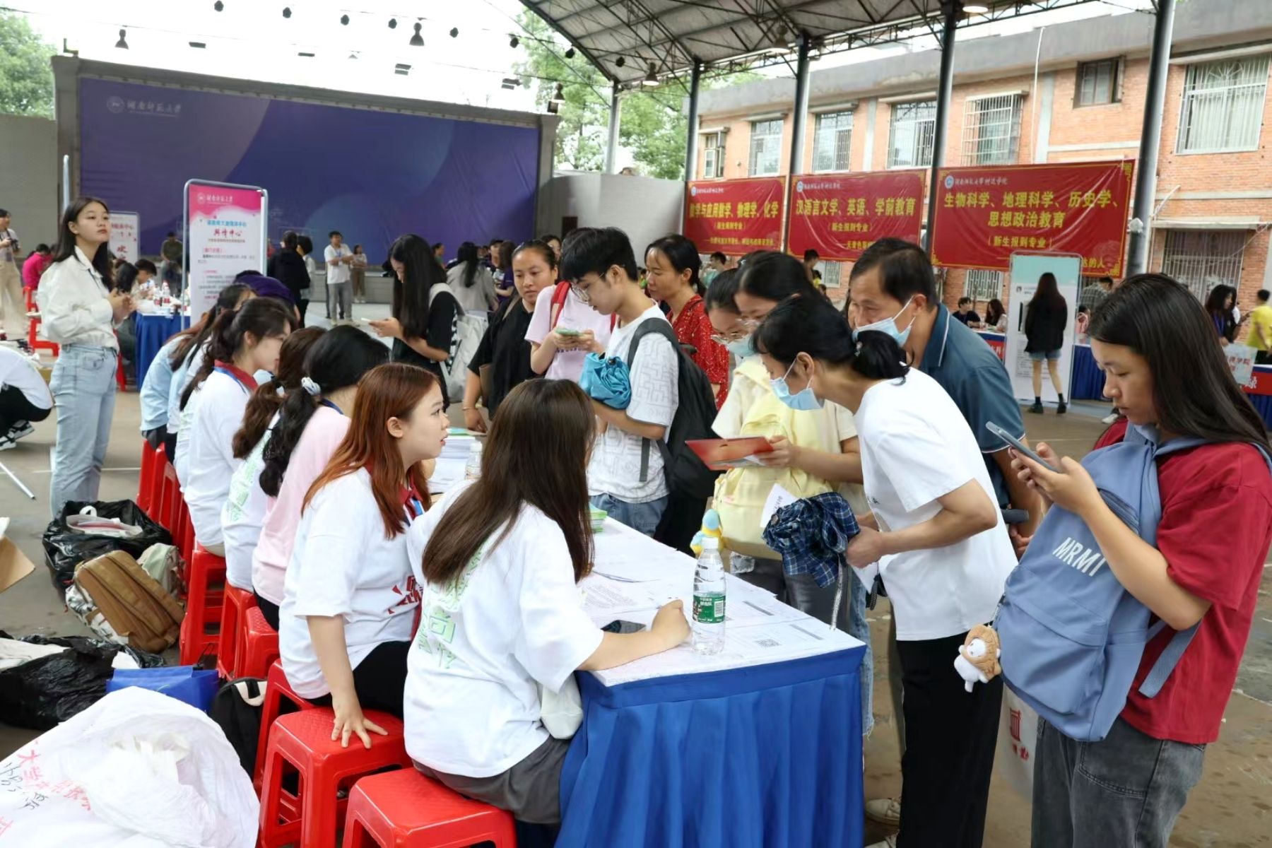 迎新现场,各部门以精准服务、安全有序为工作原则,宣传入学报到安排,解答新生疑问,各学院结合专业特色、精心筹划设计、细致布设环境,并通过校园打卡、赠送礼品、互动游戏等形式加强与新生的互动交流,营造出具有浓厚师大特色的文化环境和迎新氛围。