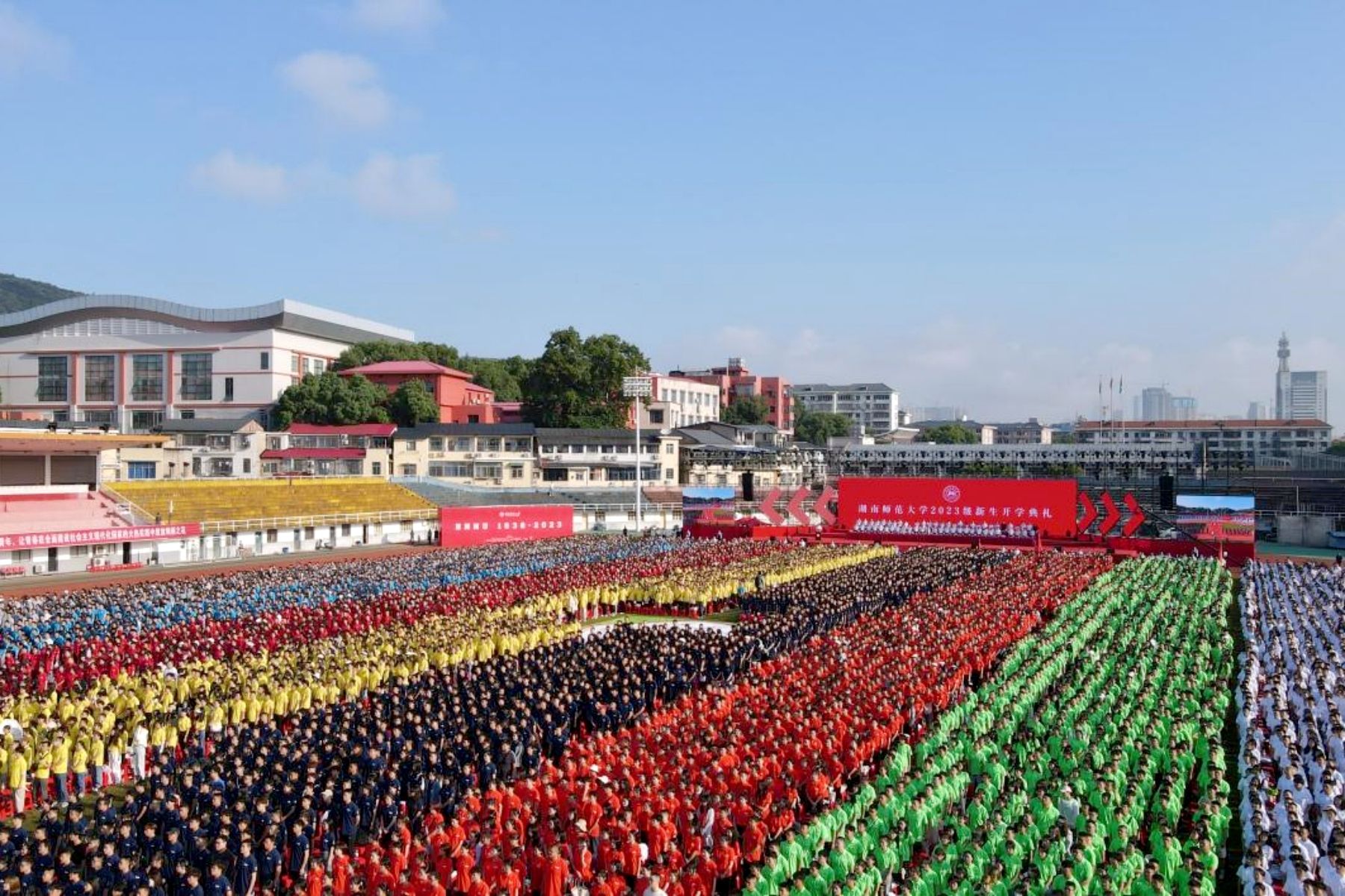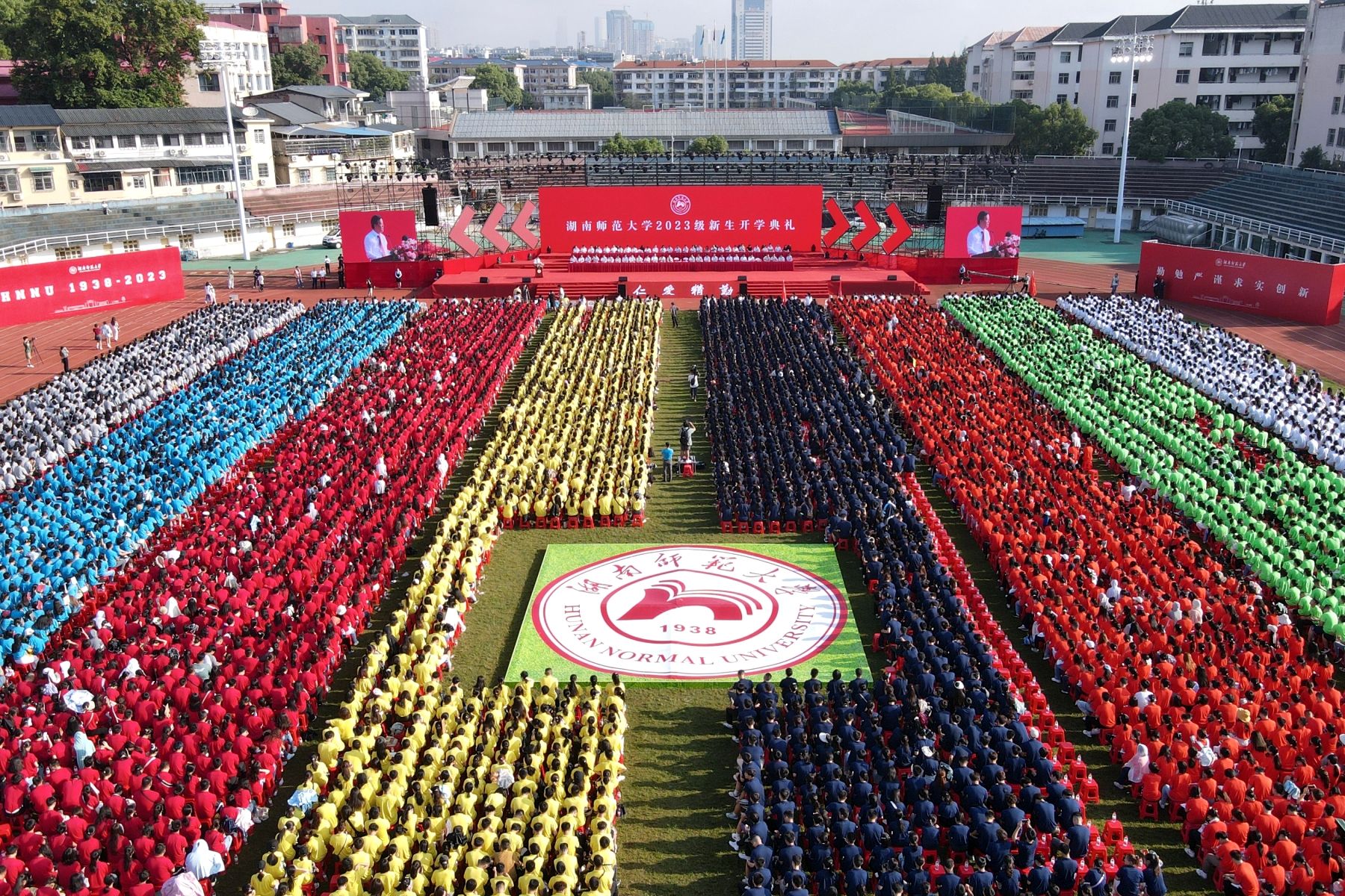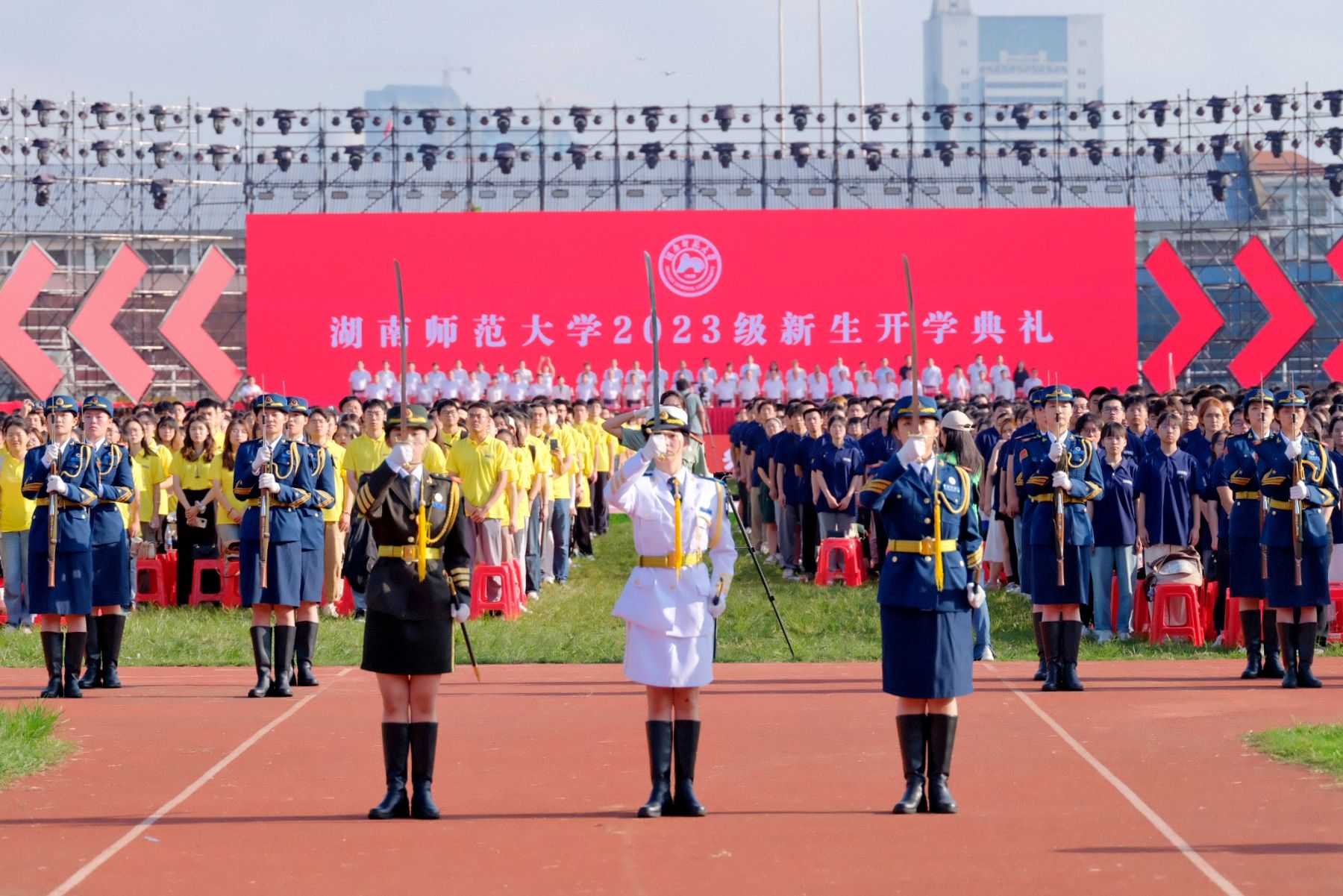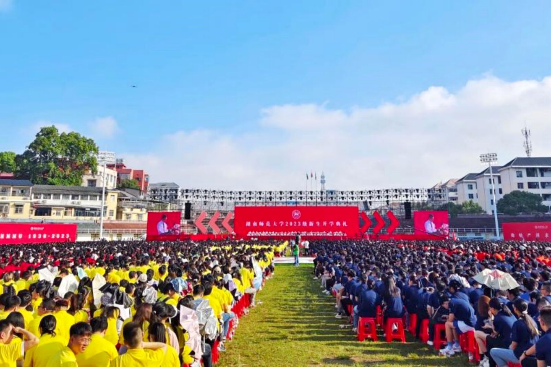 (记者 马铁泉 黄依依 刘偲睿)锦绣河山添壮丽,今朝学士尽英才。9月16日上午,我校在二里半校区体育场举行2023级新生开学典礼。全体在家校领导,学校相关职能部门、各学院负责人,全体新生参加典礼。开学典礼由校党委副书记周俊武主持。