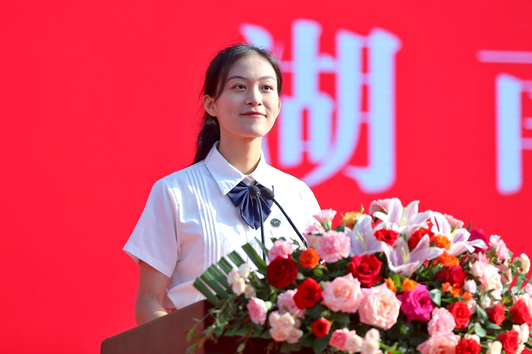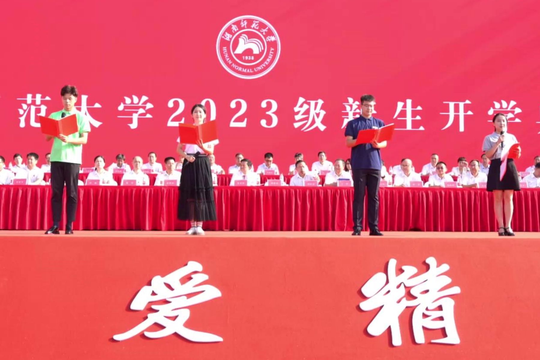 法学院2023级博士研究生黄思瑞、文学院2023级硕士研究生杨柳、新闻与传播学院2023级本科生陶冰蓝、物理与电子科学学院2023级本科生杨世琦作为新生代表发言。他们追忆了自身求学经历,对即将开启的学习生活满怀期待。他们表示,在未来的学习与生活中,自己将同“并肩者们”一道,承载师大学子的使命与担当,弘扬“仁爱精勤”的校训精神,做不负青春和韶华的奋斗者,做不负祖国和时代的追梦人。