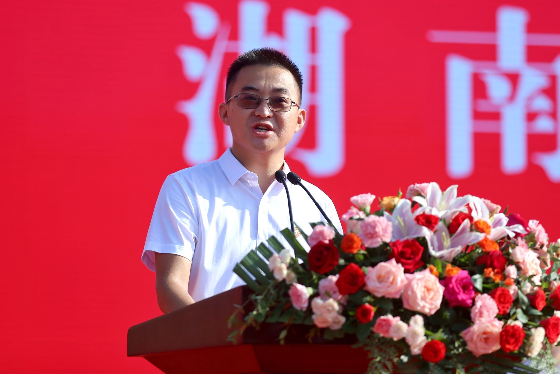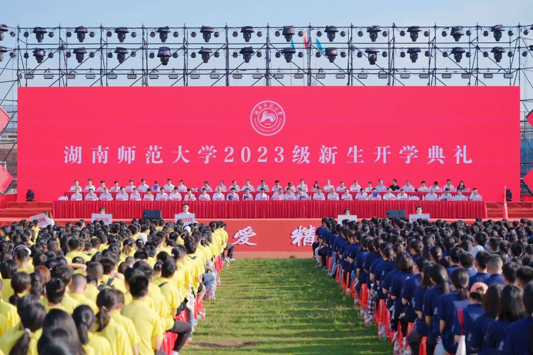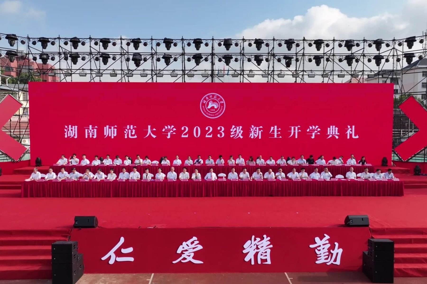 校党委书记、欧洲科学院院士蒋洪新致辞并为新生讲授“开学第一课”。他说,今年10月27日,学校将迎来建校85周年华诞,你们的到来,让这所历史悠久、声名卓著的高等学府,焕发出新的青春活力。他对全体新生提出殷切期望:一是希望大家读书知礼,心存感恩。读书既能让我们增知益见,开阔眼界;又能明德知礼,修身养性。岳麓山下好读书,期待大家都能静下心读书致知、读书明理,带着温情与敬意在经典著作中触摸智慧、学会感恩、汲取力量。同学们应心存感恩,葆有善意,传递信任。从自我做起,从小事做起,从现在做起,弘扬仁爱精勤的师大精神,尊师重道,感恩父母、师长和朋友的陪伴与帮助,感谢生活的馈赠与当下的拥有。希望同学们坚持读书知礼,努力成为一个知书达理、知恩图报、知责奋进的师大人。二是希望大家创新求索,心系家国。我们的大学自创建之时,就以“做文化的先进,国民的导师”为理想,85年来,一代代师大人,赤诚爱国的追求始终未改,教育报国的初心始终未变。希望大家始终心怀“国之大者”,厚植家国情怀,勤于探索,善于思考,敢于创新,在不断求索和坚持中,努力成为一个追求真理、肩荷使命、全面发展的师大人。三是希望大家笃行实干,心怀梦想。当今世界正在经历百年未有之大变局,世界之变、时代之变、历史之变正加速演进,对于美好梦想的坚守弥足珍贵。希望大家踊跃投身到志愿服务、创新创业、乡村振兴、社会治理、国际交流中去,拓宽思维视野,全面提升素养,实现人生价值,在矢志奋斗、不懈拼搏中,努力成为一个立大志、明大德、成大才、担大任的师大人。他祝福同学们始终坚守大学追求真理、良善与美好的初心,度过一段奋进、充实、愉快而美好的大学时光,让青春之花,在“三高四新”的美好蓝图、在民族复兴的壮阔画卷中璀璨绽放、熠熠生辉。