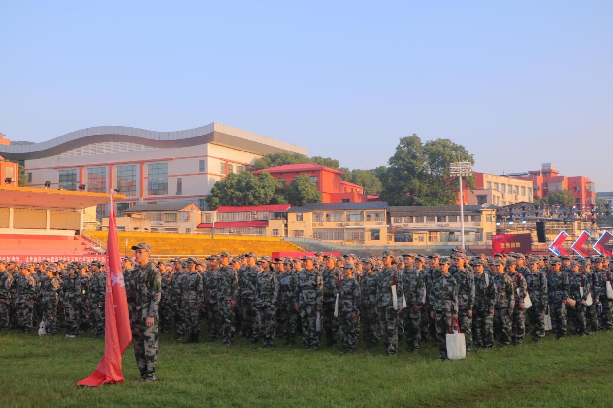 早上7:00,2023级本科新生军训动员大会在庄严的国歌声中拉开帷幕。