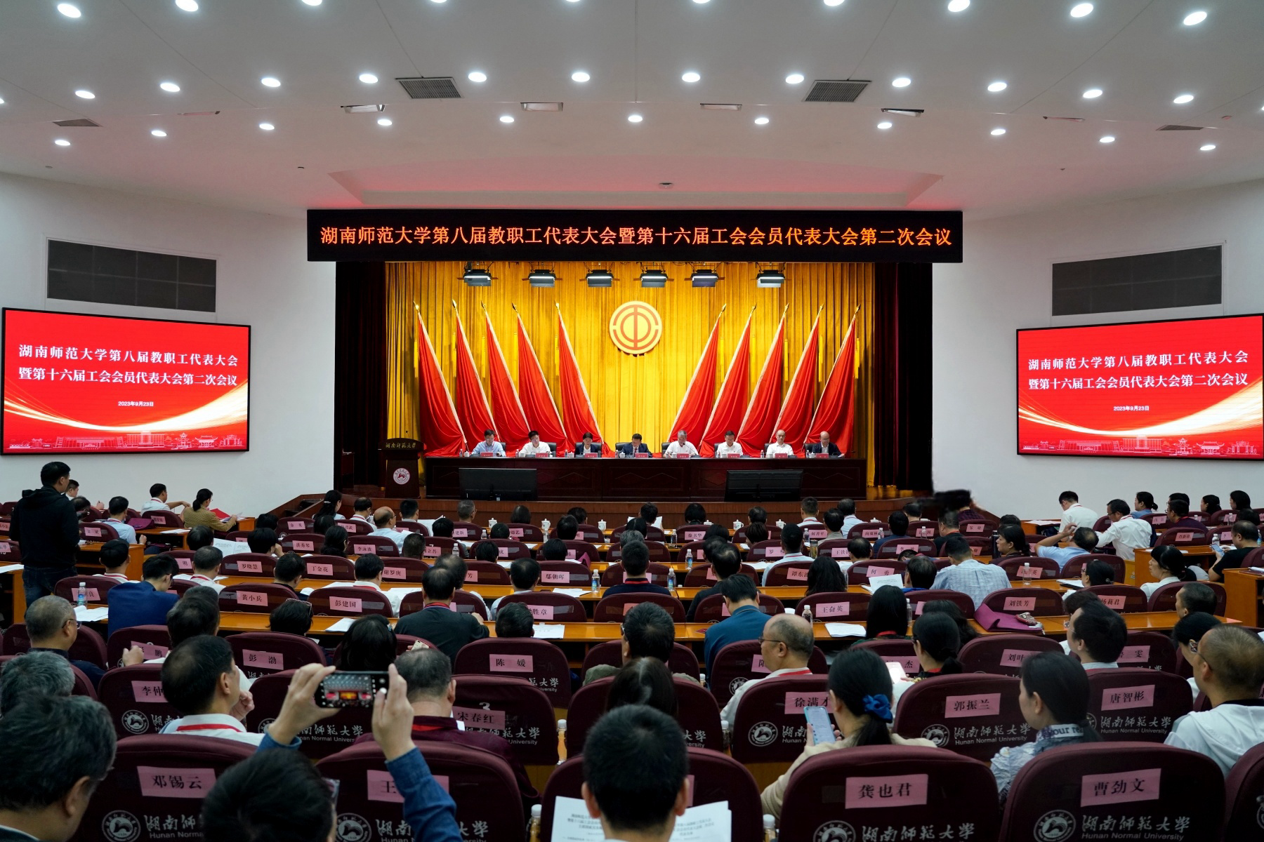 (供稿 校工会)9月23日,我校第八届教职工代表大会暨第十六届工会会员代表大会第二次会议在国际学术报告厅召开。全体在家校领导、大会主席团成员与正式代表、特邀代表、列席代表近300人参加大会。校党委书记蒋洪新主持主席团会议并讲话,党委副书记、工会主席周俊武主持两个阶段的正式会议。刘少军院士应邀出席大会。