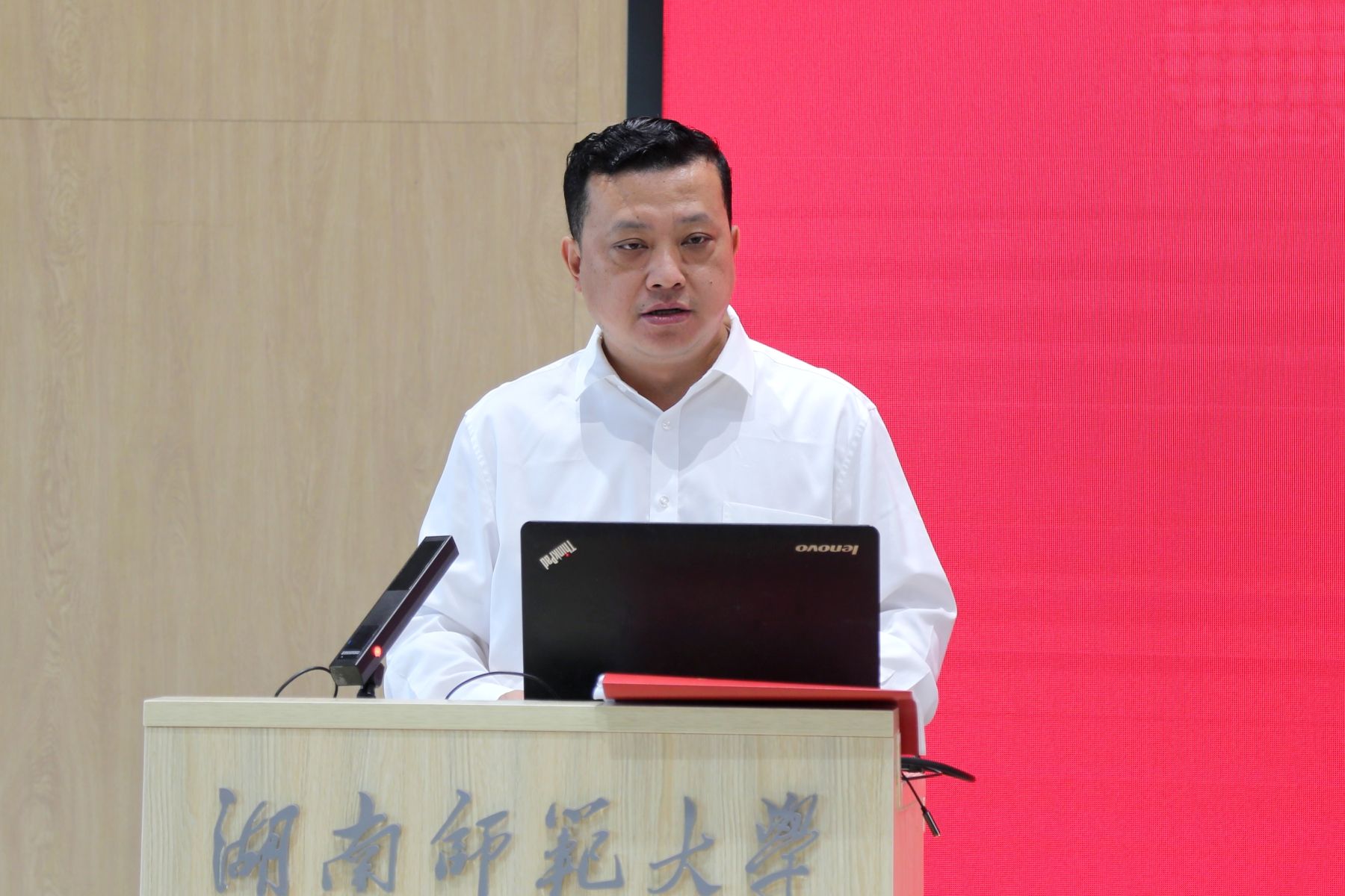 黄玉龙对基地的成立表示热烈祝贺,并对我校的精心筹备表示感谢。他表示,共建翻译研究与实践基地是外文局翻译院与湖南师大外国语学院联合培养高端翻译人才的有益尝试,也是加快落实中央关于全国翻译人才自主建设战略部署的具体举措。实践基地可以为双方开展深层次、多领域的合作搭建平台。他对基地的建设提出了三点希望:一是要聚焦国家战略需求,大力加强国家翻译能力建设。外文局翻译院愿与湖南师大一道,以服务国家总体战略为出发点,聚焦多语种翻译研究、实践创新和人才培养,共同打造一支懂语言、精专业、通传播的翻译国家队;二是要坚持应用导向,打造高端翻译人才蓄水池。翻译实践基地是政产学研用一体化合作培养高层次人才的重要形式,为学生的发展提供有力支撑,让学生在实践、历练和磨炼中逐渐成长为高端翻译人才、政治行业领军人才乃至名家大师。三是要抓好督促落实,推动基地建设走深走实。要建立科学有效的协同协作机制,继续加强沟通配合,推行行业学业双导师制,开展课题联合攻关、项目协作、管理培训、经验交流、部门协作等,推动基地项目常态化运行,形成以培养高素质翻译人才为目标的可持续发展实践平台,为推动国家翻译能力建设和国际传播能力建设提供坚实的人才支撑。