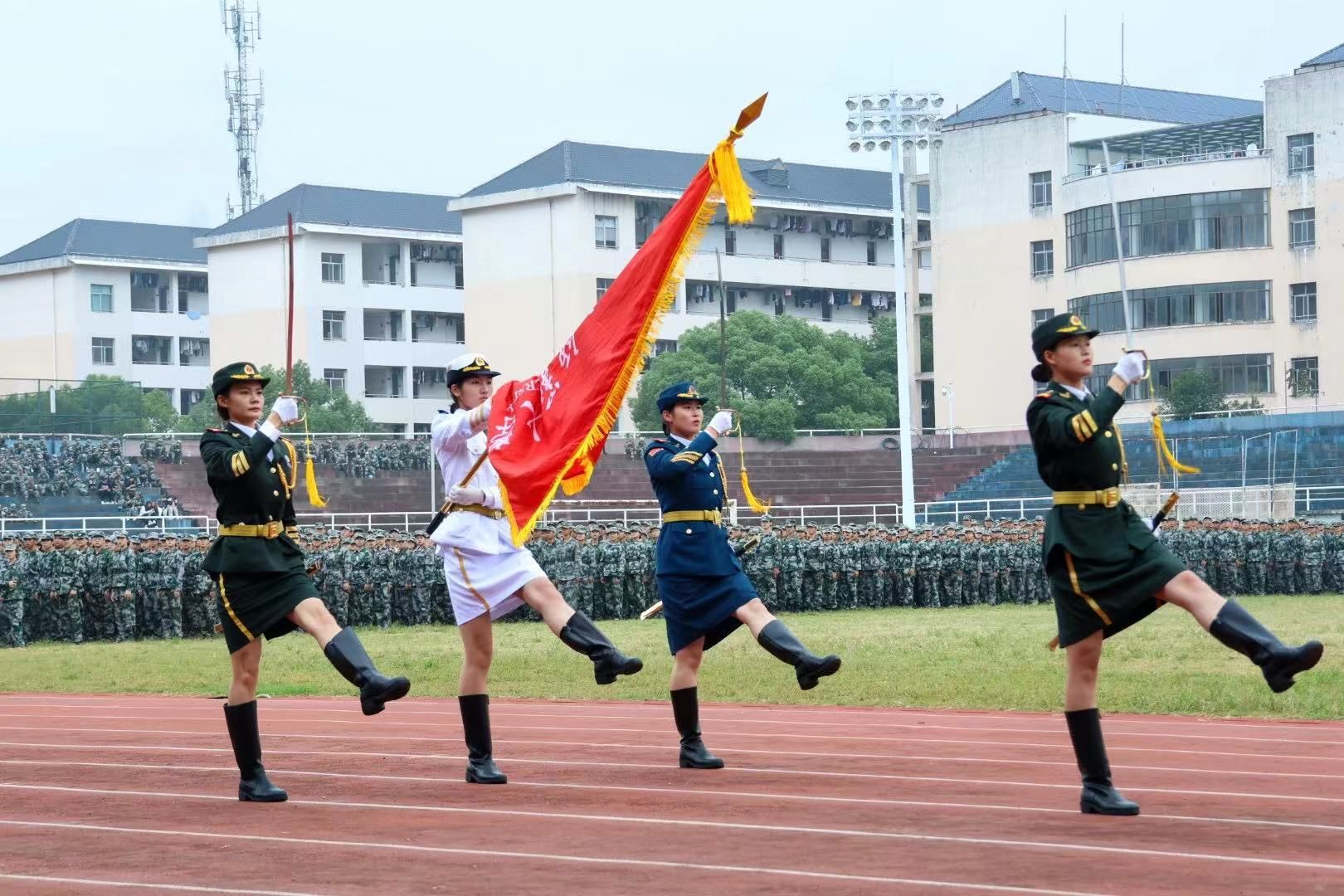 女子国旗护卫队带来枪操表演,不爱红装爱武装,展现出“不让须眉”的巾帼之姿。