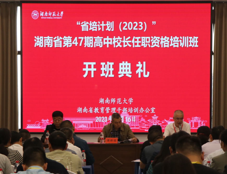(供稿 干训办)10月16日上午,湖南省第47期高中校长任职资格培训班在我校开班,副校长蒋新苗出席开班典礼,开班典礼由湖南省教育管理干部培训办公室副主任朱常青主持。