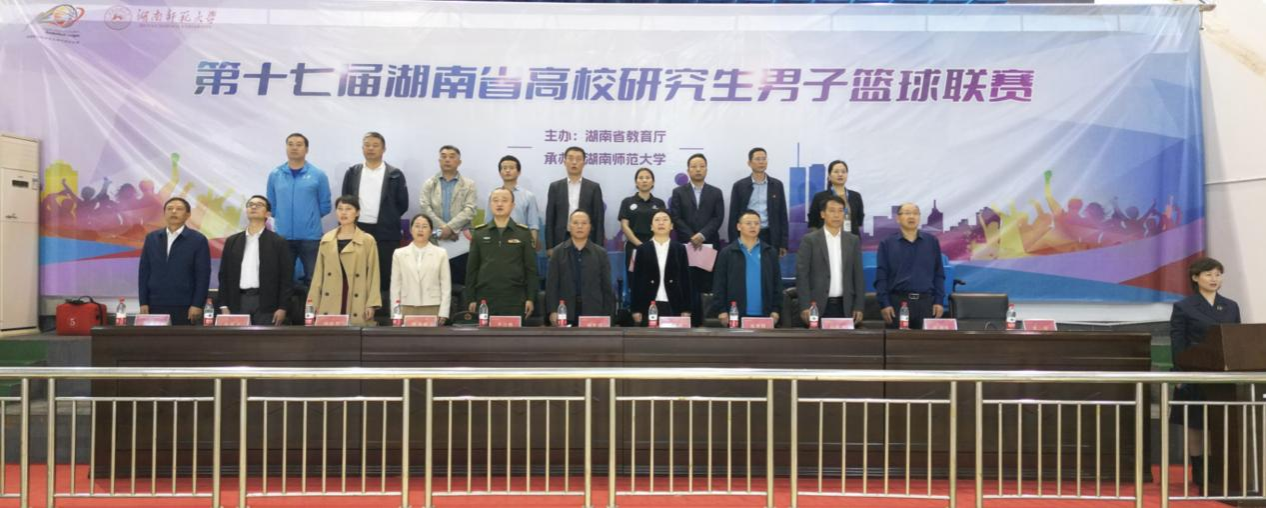 (记者 张尧钰 李影)10月27日下午,由湖南省教育厅、省人民政府学位委员会办公室主办,我校承办的第十七届湖南省高校研究生男子篮球联赛开幕式在我校南院校区行健馆举行。此次开幕式由我校研究生院党委书记龚舒主持,省教育厅学位管理与研究生教育处二级调研员刘梦清,我校党委委员、纪委书记姚春梅教授出席开幕式。