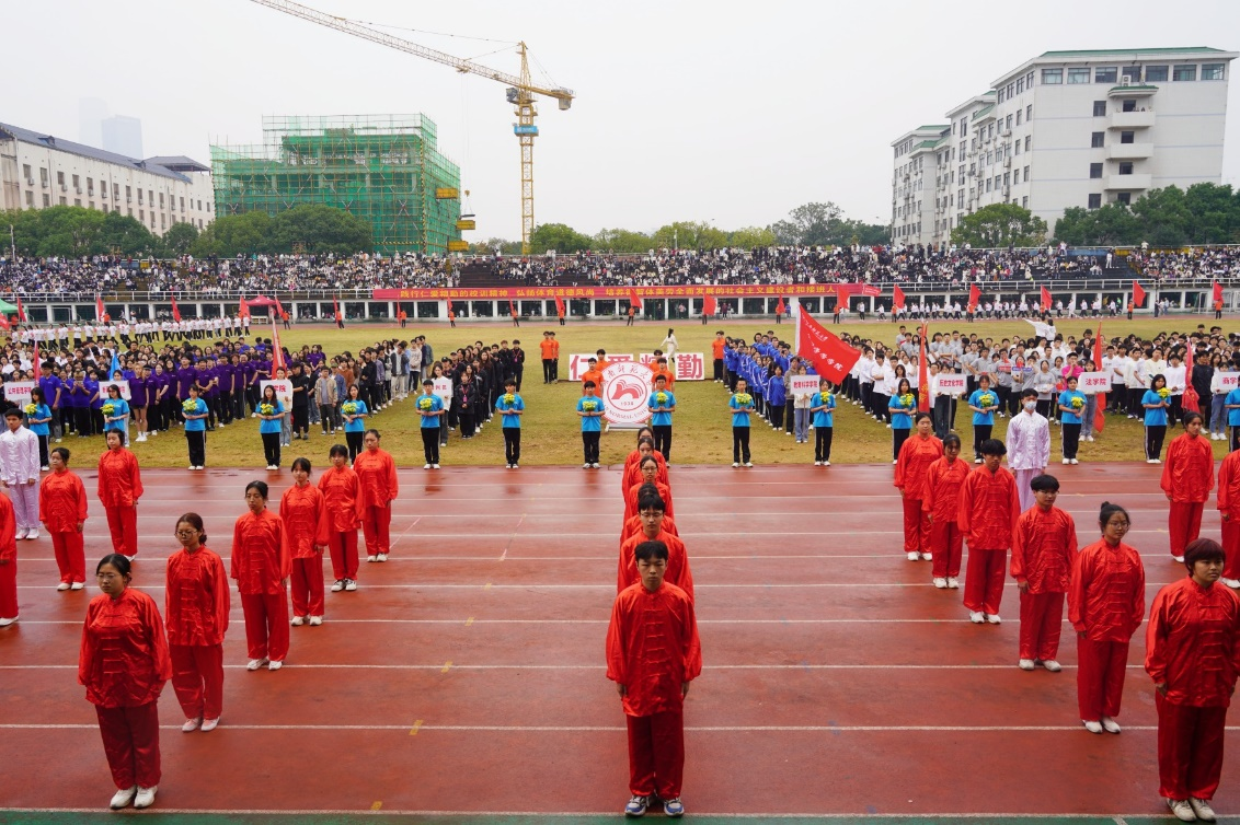 开幕式上,英姿飒爽的护旗手高举国旗、校旗率先入场,校训队、鲜花方队、红旗方队、裁判员方队以及由学校各学院组成的运动员代表方阵紧随其后,踏着矫健的步伐依次经过主席台,他们意气风发、斗志昂扬,充分展现出我校学子的青春活力。随后,刚柔并济的太极集体展示、节奏轻快的健美操表演、活力四射的啦啦操以及精彩绝伦的舞龙和中国传统武术表演轰动全场,为我校85周年校庆献上诚挚的礼赞。