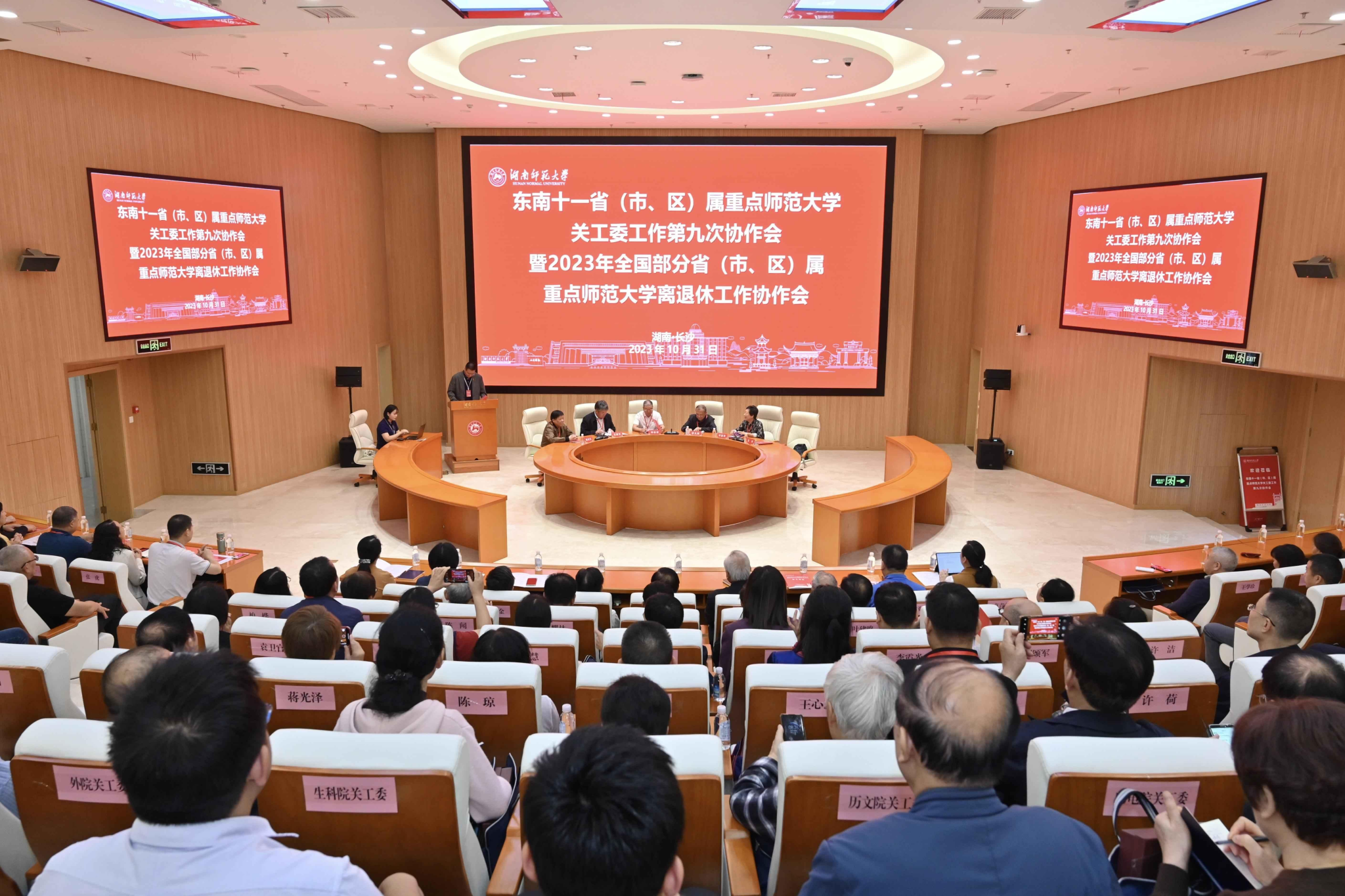 (记者 陈芳 周紫欣)10月31日,东南十一省(市、区)属重点师范大学关工委工作第九次协作会暨2023年全国部分省(市、区)属重点师范大学离退休工作协作会在我校图书馆报告厅举行。湖南省教育厅关工委常务副主任舒凡卿,校党委副书记周俊武出席会议。离退休工作处处长王齐主持会议。