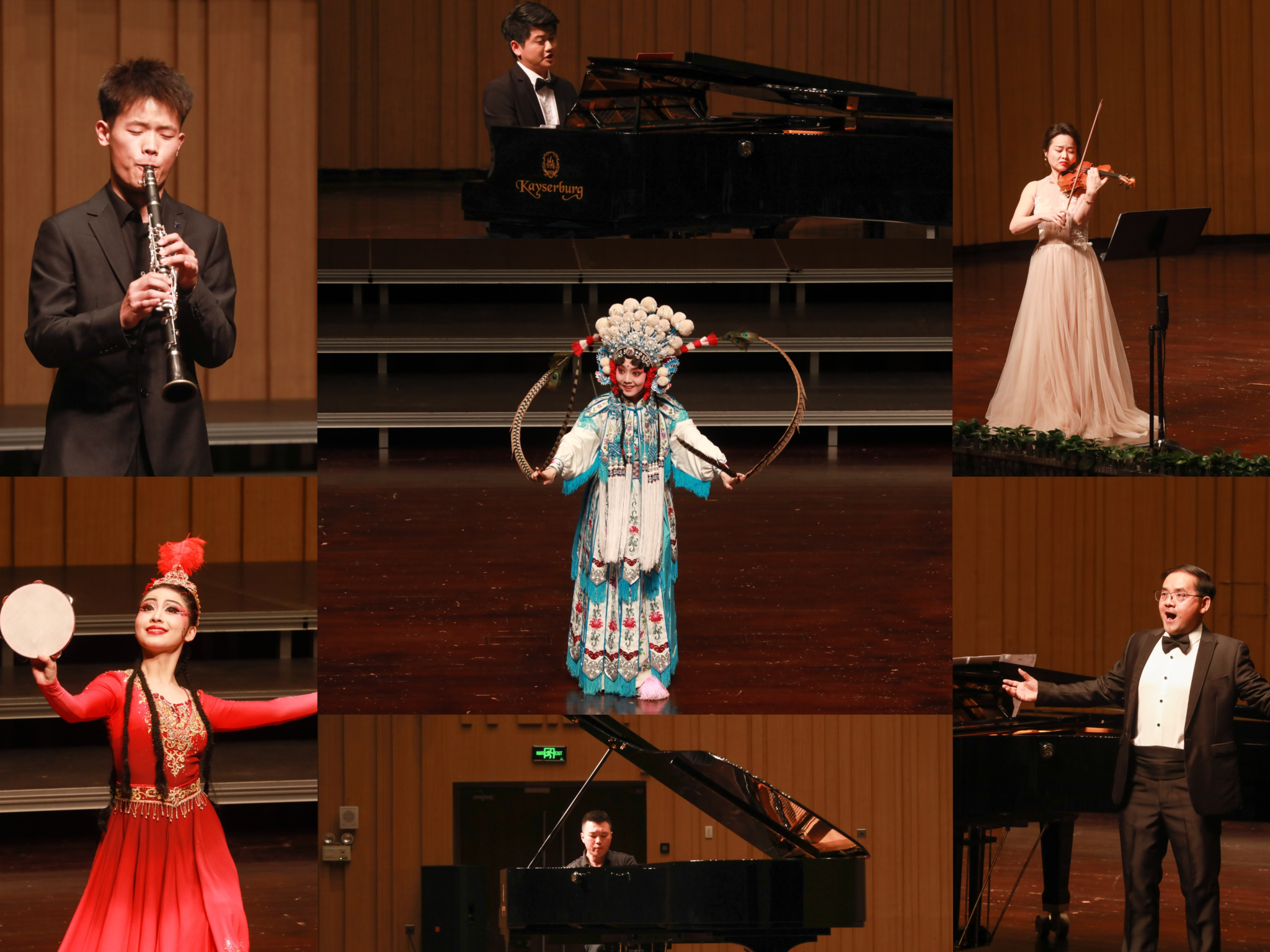 音乐会上半场的曲目来自参展师生。吉林艺术学院、四川师范大学、内蒙古师范大学、哈尔滨师范大学、安徽师范大学、西南大学和我校的参展选手带来的舞蹈、川剧、即兴弹唱、钢琴独奏、小提琴独奏、单簧管独奏、男声独唱。下半场的曲目由我校音乐学院师生呈现,天籁合唱团、潇湘爱乐交响乐团以及小提琴演奏家柴亮、青年中阮演奏家王文洁、青年歌唱家石倚洁、钱树林、陈思里、曾敏、曲丹等进行精彩演绎。