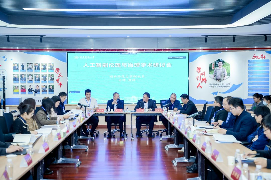 会上9位专家围绕“人工智能伦理与治理”主题进行了多维度的深入探讨。刘高作题为《湖南省科技伦理探索与实践》的报告;国防科技大学杨爱华教授作题为《正义战争伦理视域下无人作战系统对战争伦理的冲击》的报告;大连理工大学李伦教授作题为《人工智能社会实验及其伦理规范》的报告;湖南省社会科学院宋春艳副研究员作题为《人机融合智能的自我意识与交互主体性》的报告;商汤智能产业研究院田丰院长作题为《AIGC治理与风险管理体系》的报告;长沙通诺信息科技公司万龙总经理作题为《科技伦理治理:从理念到落地》的报告;电子科技大学雷瑞鹏教授作题为《人工智能伦理与治理》的报告;湖南大学谭海波教授作题为《全球人工智能风险治理的政策文本分析》的报告;我校毛新志教授作题为《人工智能价值对齐的伦理动因》的报告。