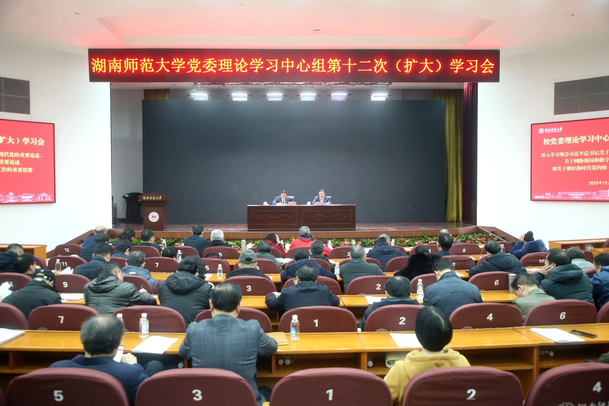 蒋洪新高度肯定此次专题学习,要求各单位加强自学和研讨,进一步提高站位,学深悟透、准确把握习近平总书记系列重要论述和思想。他提出,大家要进一步加强思想政治引领,充分发挥大学在人才培养、科学研究、文化传承创新、国际交流合作方面的基础性作用,结合长沙创建全球研发城市、助力“三高四新”美好蓝图,以教育高质量发展推进中国式现代化;要进一步完善大统战工作格局,充分发挥统一战线凝聚人心、汇聚力量的强大法宝作用,密切关心关注师生,时刻绷紧安全防线,守好安全底线;要进一步推动信息技术与教学科研及社会服务深度融合,加强对数字化转型阶段教学规律的研究,努力走出一条具有湖南师大特色的教育数字化发展道路。