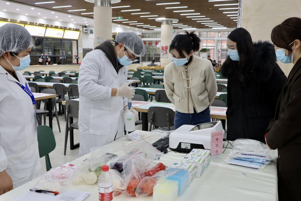 (记者 黄佳 易璇)1月17日上午,长沙市市场监督管理局食品安全“你点我检、服务惠民生”进校园活动在我校木兰路食堂举行,长沙市市场监督管理局党组成员、副局长金雷,湘江新区商务和市场监管局食品安全监管处处长王海奕,我校副校长刘怀德到场指导。
