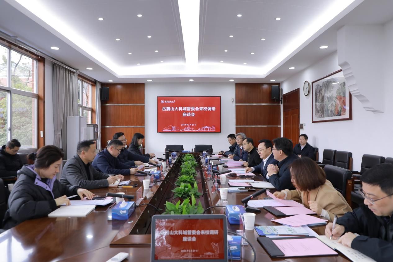 (通讯员 文知伶 记者 刘偲睿)2月29日下午,岳麓山大学科技城管理委员会罗予武书记一行来我校调研,座谈会在校办公楼二会议室举行。中共第二十届中央候补委员、中国工程院院士、校长刘仲华,副校长潘安练出席会议。会议由我校大科城办专职副主任陈涛主持。