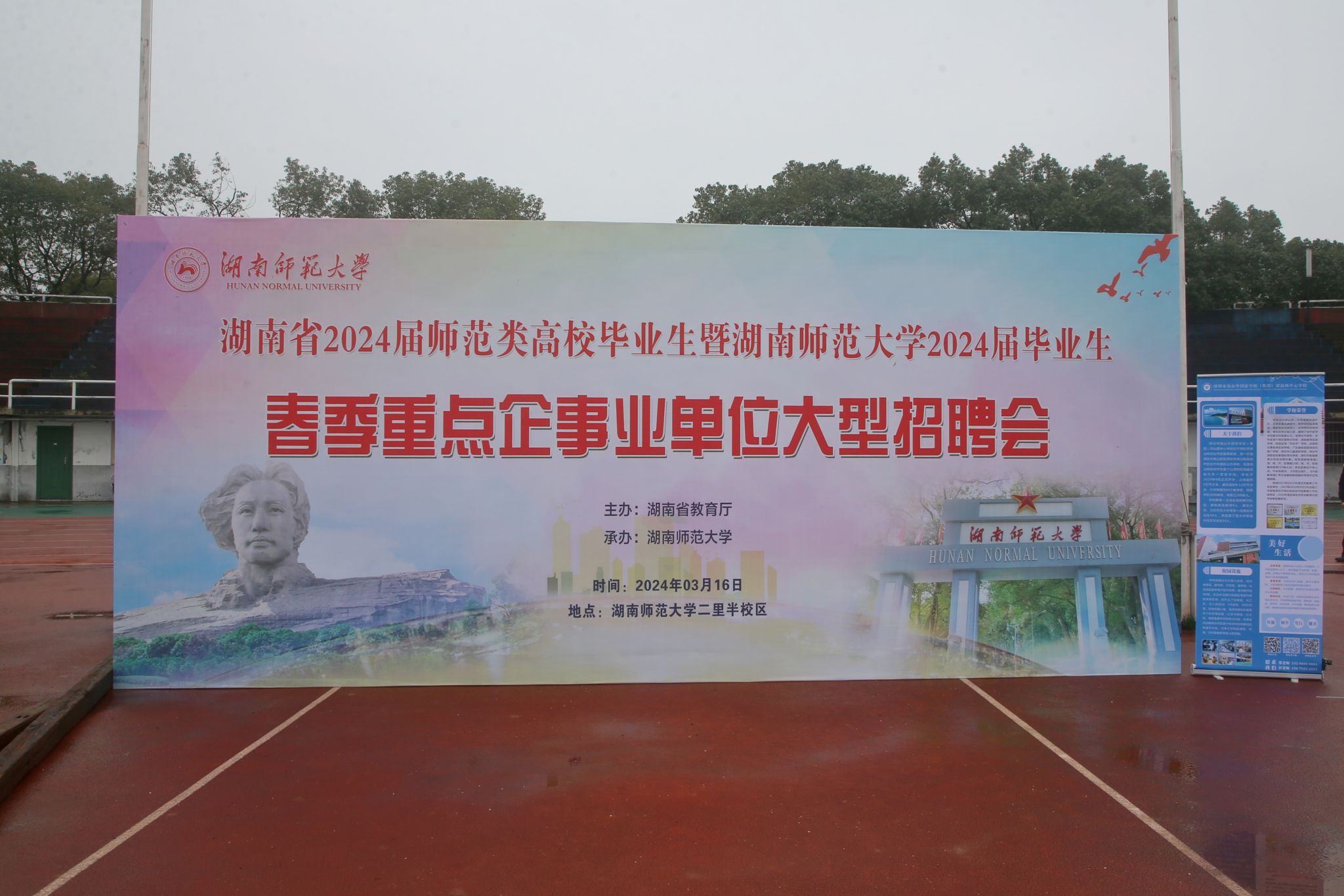 (记者 黄依依 李昕萌 项和烽)3月16日,湖南省2024届师范类高校毕业生暨我校2024届毕业生春季重点企事业单位大型招聘会在我校二里半田径场举办。副校长王辉到场指导。
