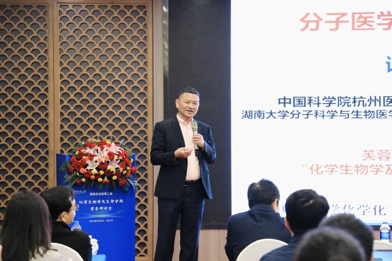 (通讯员 唐健清 段叶蕤 任天阔)4月6日上午,由芙蓉实验室、我校化学化工学院、化学生物学及中药分析教育部重点实验室和交叉科学研究院共同主办的第二届“化学生物学及生命分析”学术研讨会在长沙开幕。中国科学院院士谭蔚泓,北京师范大学副校长陈兴,湖南省科学技术协会副主席陈松,中南大学湘雅医学院常务副院长、芙蓉实验室副主任武明花,我校校长、中共第二十届中央候补委员、中国工程院院士刘仲华出席开幕式。开幕式由我校副校长潘安练主持。