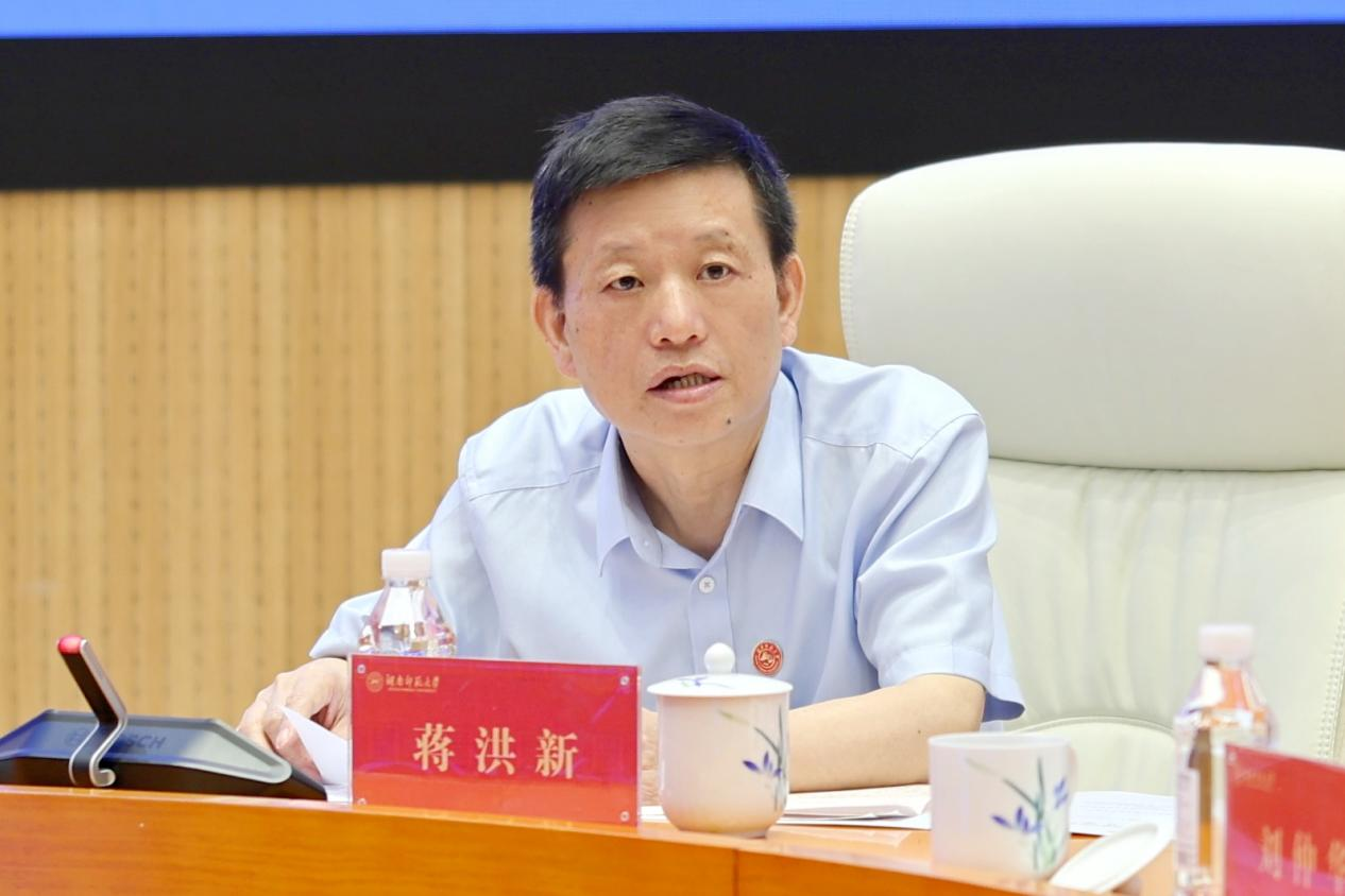 6月14日上午,专家意见交流会在图书馆报告厅召开。专家组组长彭双阶及全体专家组成员,湖南省教育厅党组书记、厅长夏智伦,省教育厅高等教育处副处长周军,我校党委书记、欧洲科学院院士蒋洪新,校长、中共第二十届中央候补委员、中国工程院院士刘仲华,以及在家全体校领导出席会议。会议由彭双阶主持。
