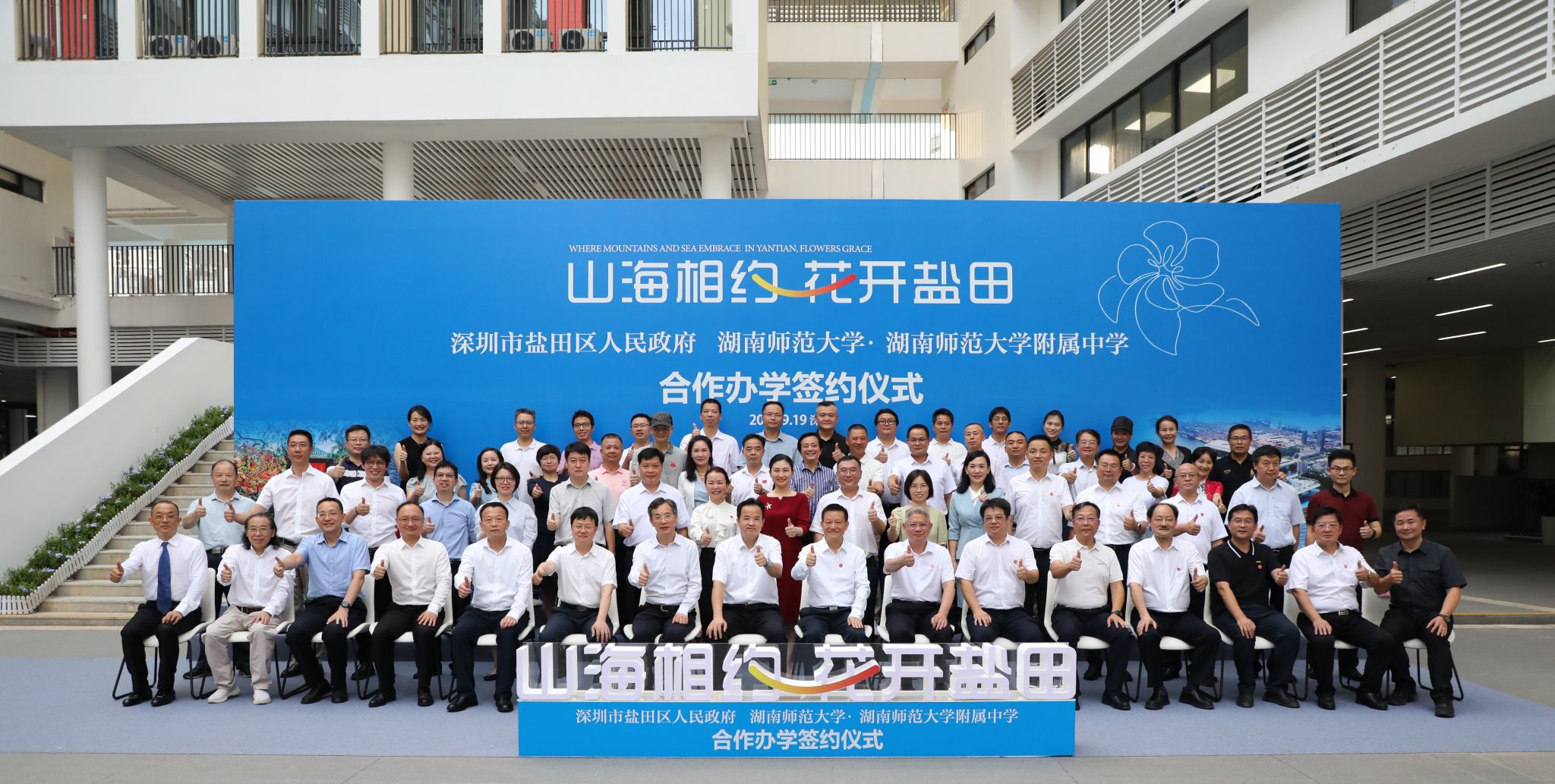 (通讯员 李东权)9月19日下午,我校及附中与深圳市盐田区人民政府在该区山海学校签署基础教育合作办学协议。盐田区委书记李忠,我校党委书记、欧洲科学院院士蒋洪新,副校长唐贤清出席签约仪式。