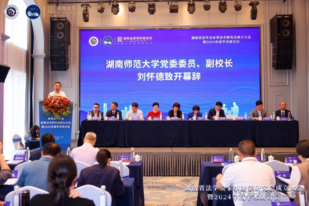 (通讯员 王葆莳)10月13日,省法学会家事法学研究会成立大会暨2024年度学术研讨会在长沙市举行,我校副校长刘怀德出席会议并致开幕词。