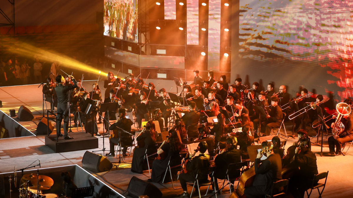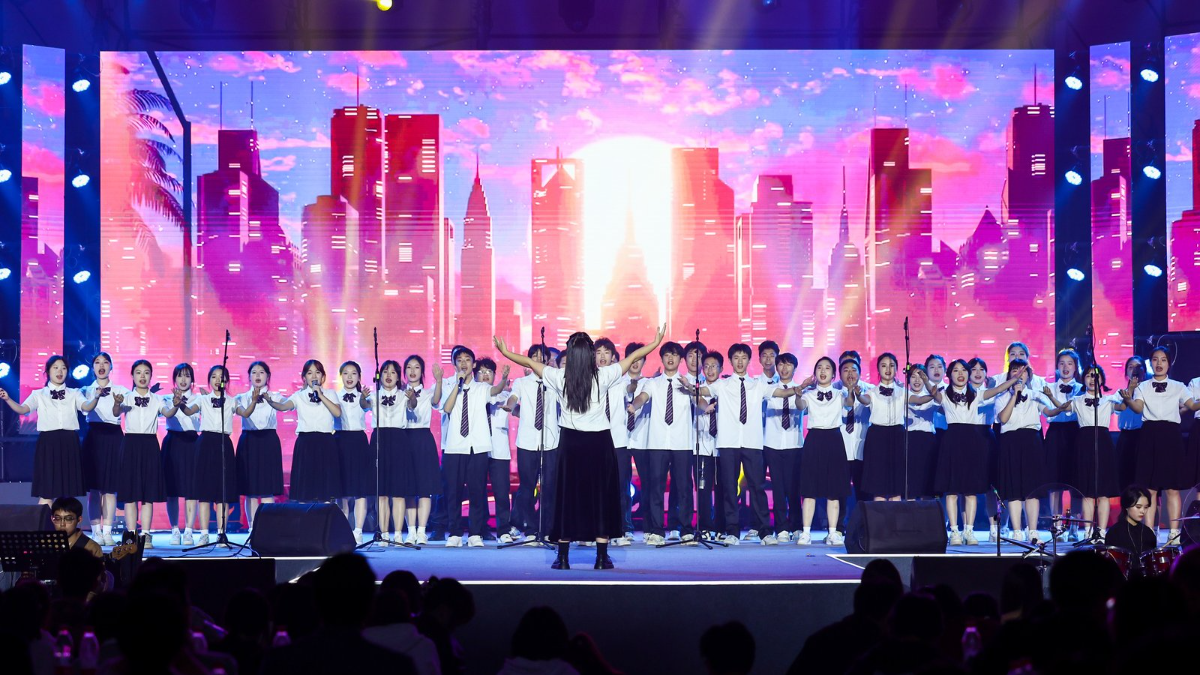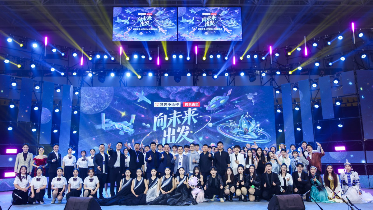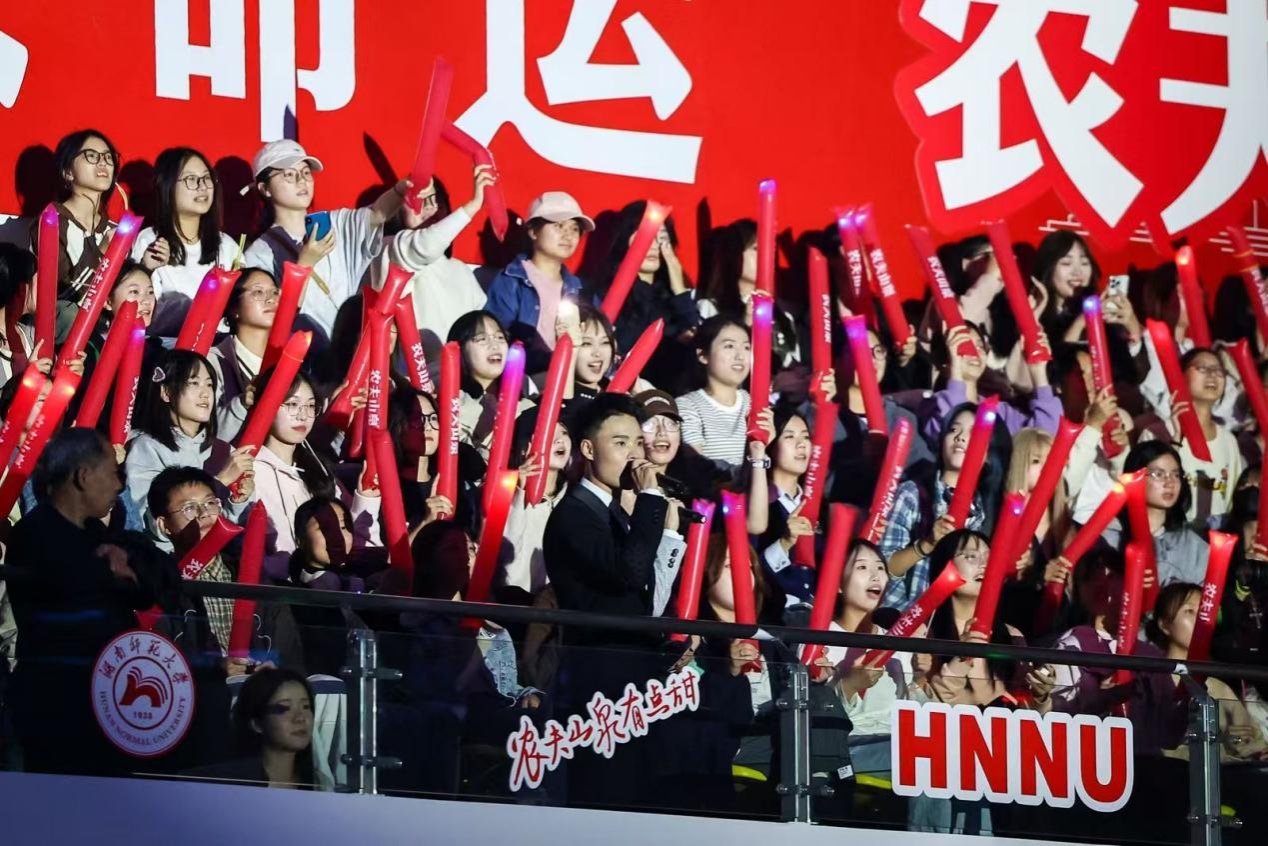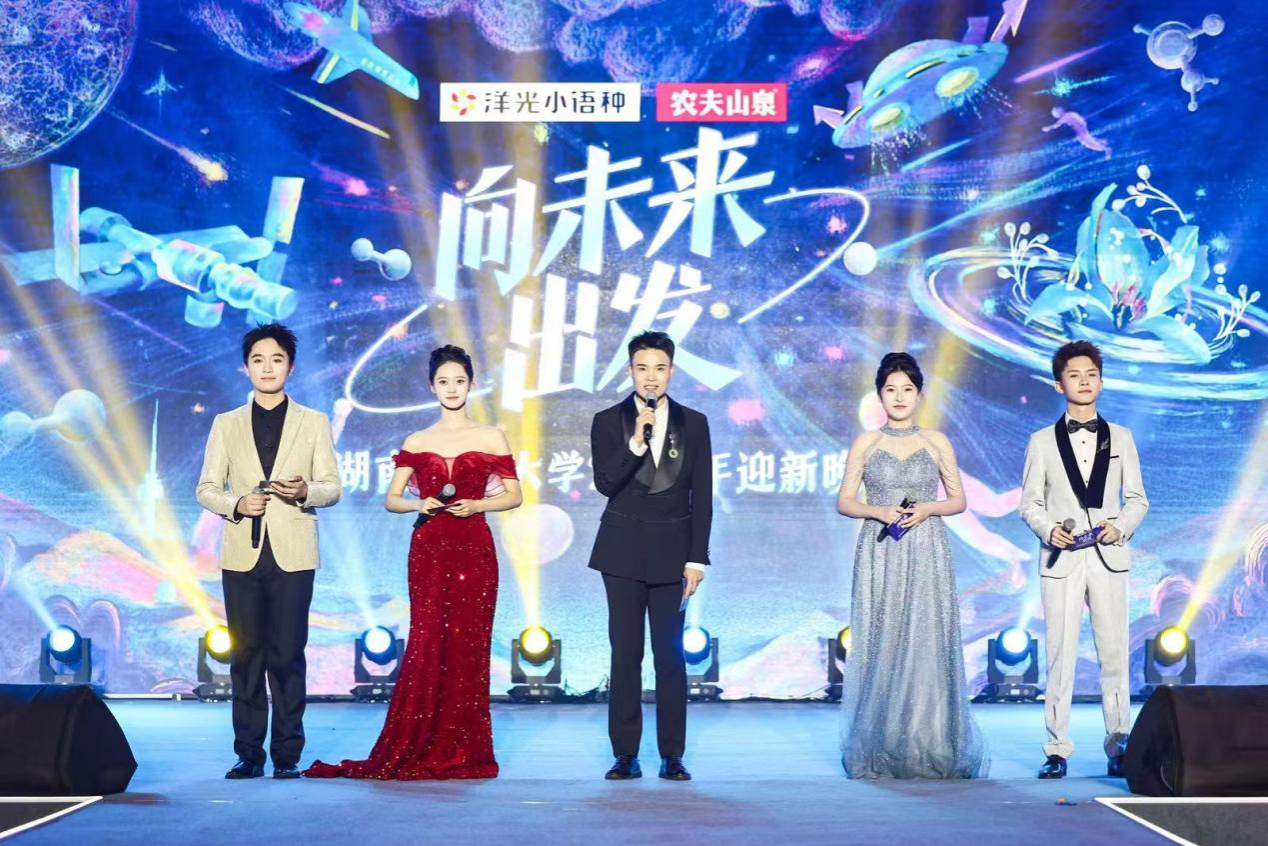 湖南洋光在线教育科技有限公司总经理赵振、全国市场总监盛洋华、全国教学部经理唐小玲,农夫山泉股份有限公司湘北大区岳麓办经理巫江龙、岳麓区经销商曾建树,我校校友企业家联盟相关领导嘉宾,学校相关职能部门负责人及2024级新生代表参加活动,5.2万余名观众通过图片直播形式线上观看晚会盛况。