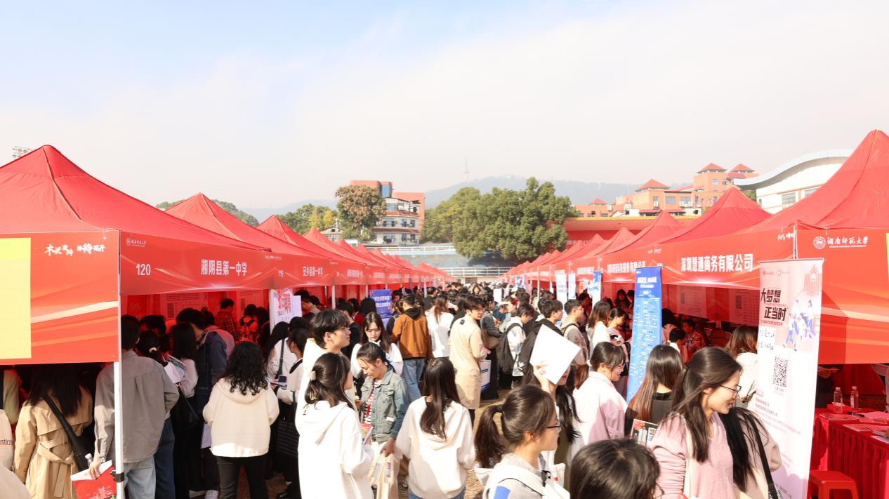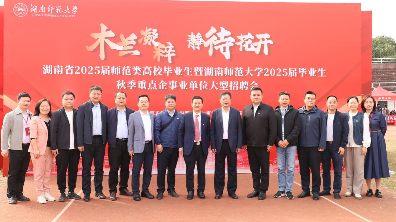 (记者 王梓伊 何子慧)11月9日,湖南省2025届师范类高校毕业生暨我校2025届毕业生秋季重点企事业单位大型招聘会于我校二里半田径场举办。湖南省教育厅学生处处长周韶峰、副处长鲁光杰,我校党委书记蒋洪新,副校长王辉到场指导。