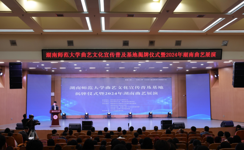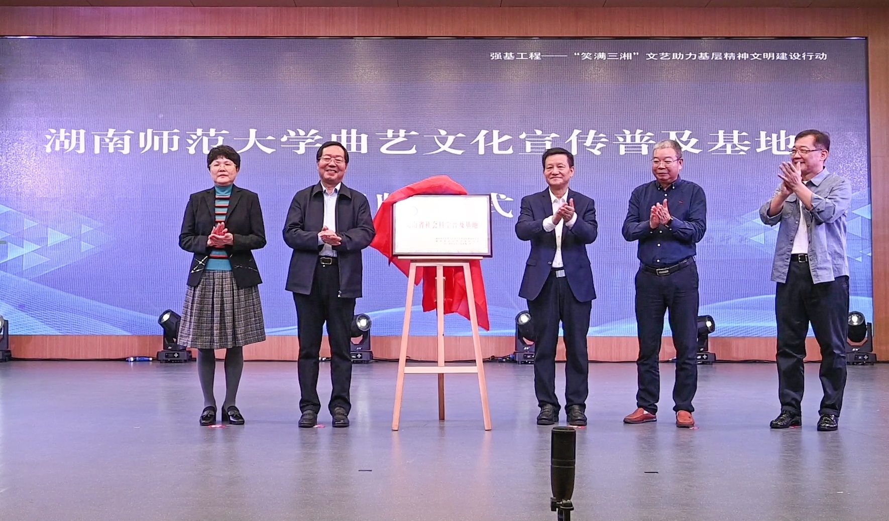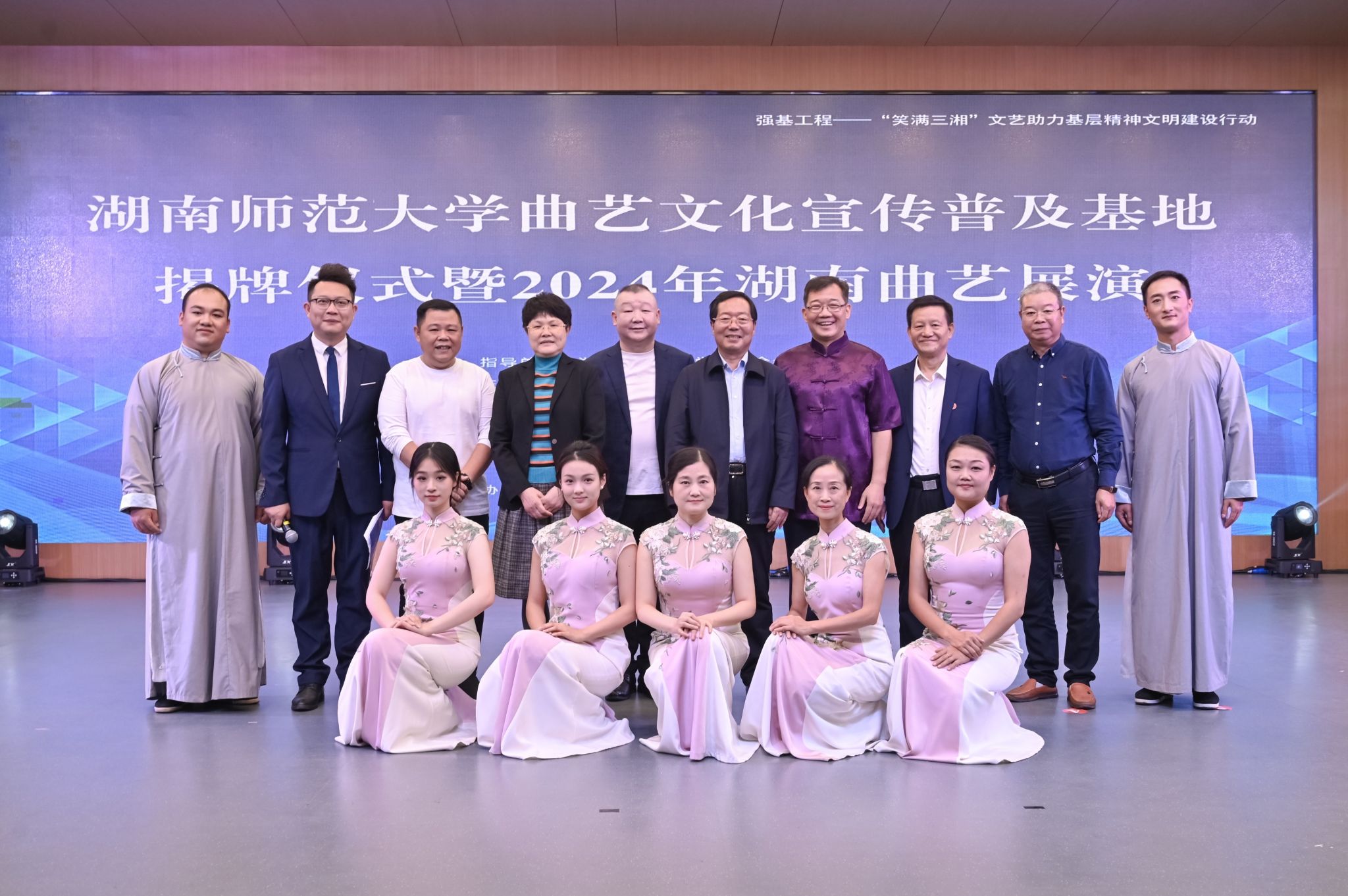 (供稿 音乐学院 记者 黄依依 李琳)11月11日,湖南省社科普及基地太阳网集团tcy8722曲艺文化宣传普及基地揭牌仪式暨2024年湖南曲艺展演在我校音乐学院举行。省社科联党组书记、副主席胡代松,副主席贺建湘,我校党委书记、欧洲科学院院士蒋洪新,党委副书记周俊武出席会议。