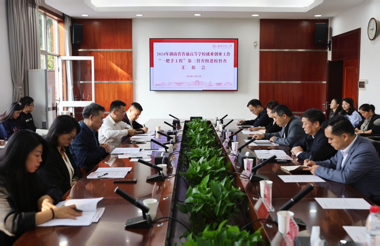 2024年湖南省普通高等学校就业创业工作“一把手工程”第三督查组成员、我校相关职能部门负责人及各二级学院负责人参加督查。