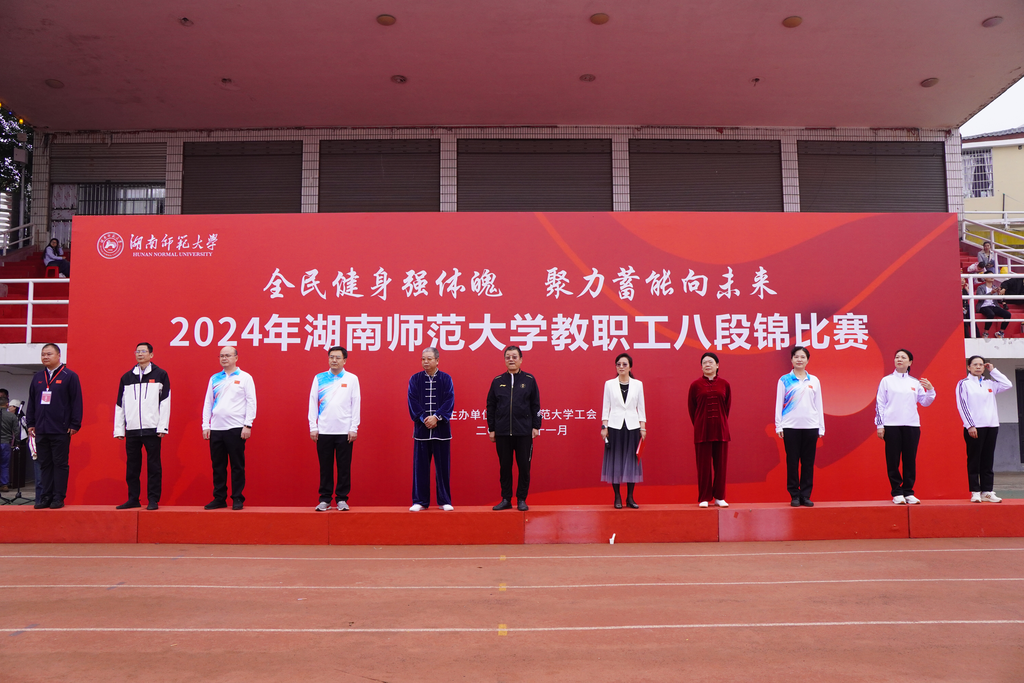 (记者 徐伟柔 宋曼君)11月16日上午,我校于二里半校区田径场举行2024年教职工八段锦比赛。省总工会党组成员、省教育工会主席刘湘凌,省教育工会副主席邓曼,校党委副书记周俊武,纪委书记姚春梅出席活动。比赛由校工会副主席杜汉文主持。