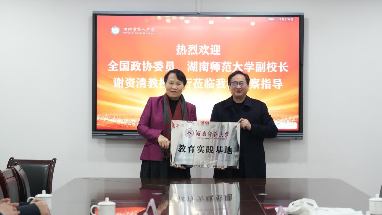 谢资清对衡阳市八中长期以来对我校的支持表示感谢。她指出,作为教师教育特色鲜明的“双一流”高校,我校始终坚持把弘扬教育家精神,培养面向未来基础教育的卓越教师作为应尽的使命与担当。衡阳市八中作为三湘名校,基础教育成效突出,通过双方合作,能进一步集聚优质育人资源,为师范生实习搭建更加优质的平台;同时,我校优秀的学科资源,也能为实习基地校教师的专业发展提供宽广的平台,实现双赢。