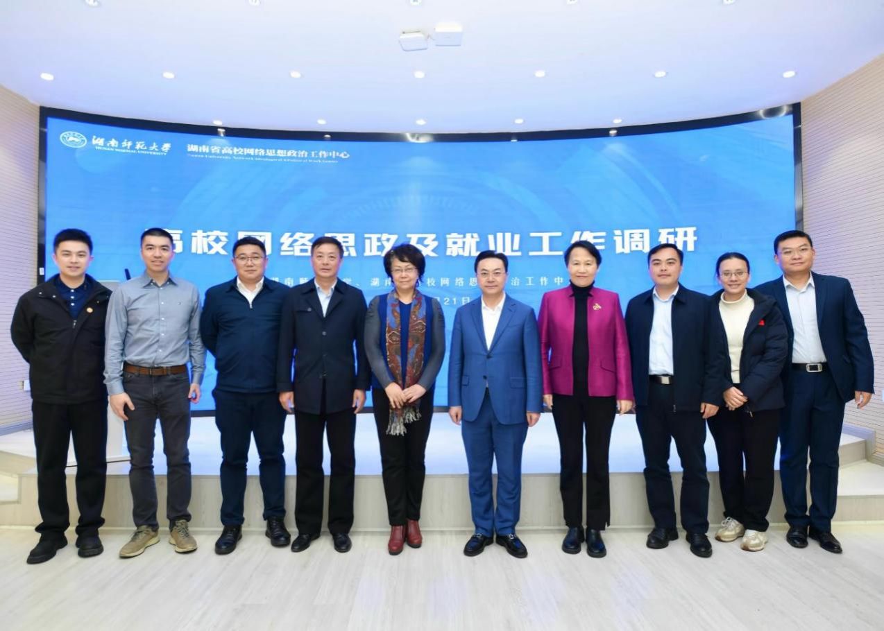 翁铁慧一行先后参观了学校易班发展中心、湖南省高校网络思想政治工作中心,详细了解了我校学生工作开展情况和网络思政做法成效,充分肯定了学校在思政教育短视频方面取得的成效。