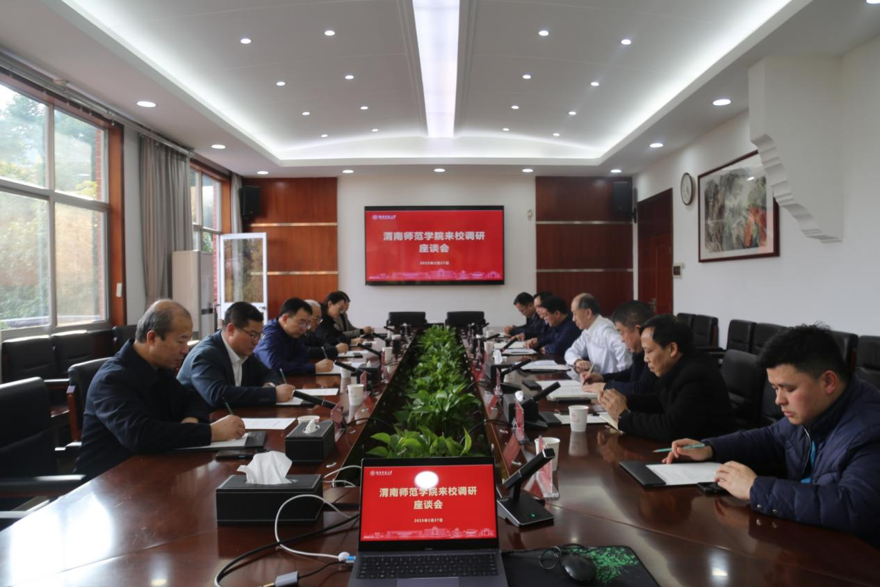(记者 张思博 宋晨)2月27日下午,渭南师范学院党委书记、校长张守华一行来校调研交流,调研座谈会在校办公楼二会议室召开。会议由我校副校长杨震主持。