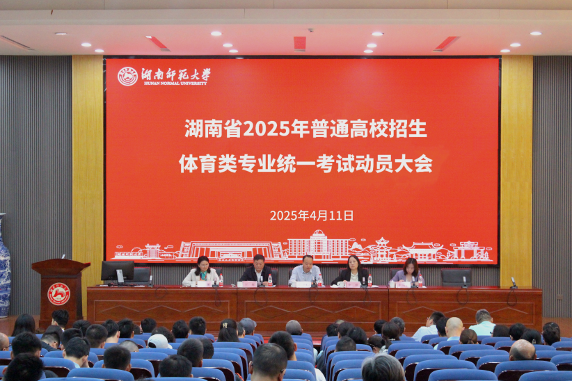 (通讯员 蒋晓晨 李欣颖)4月11日上午,湖南省2025年普通高校招生体育类专业统一考试动员大会在我校召开。省教育考试院党委副书记、纪委书记刘海杨,省教育考试院副院长李瑛,我校副校长王辉出席会议。会议由我校招生与就业指导处副处长李灿华主持。